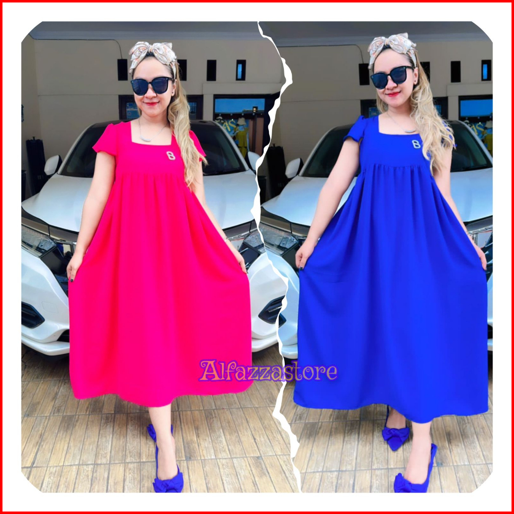 Alfazza Long Summer Dress Ruffle Babydoll Crinkle Airflow Daster Jumbo Outfit Pantai Bumil Kekinian