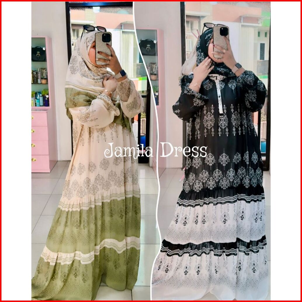 Jamila Dress Ceruti Babydoll Muslimah Adem Set Hijab Wanita Muslimah Outfit Kekinian