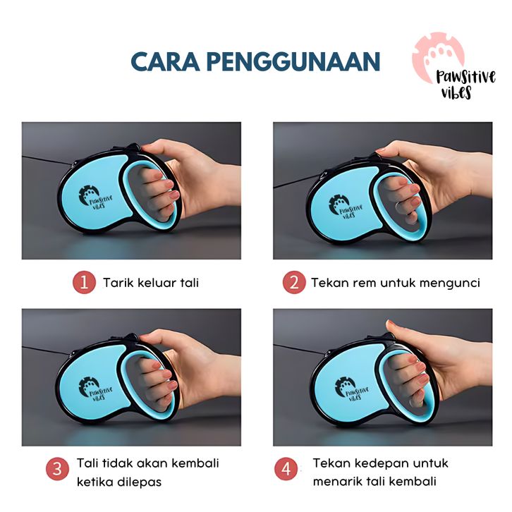 Tali Tuntun Anjing Kucing Otomatis 5 Meter - Pet Dog Lead Leash Retractable Automatic (BestSeller)
