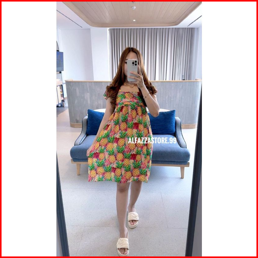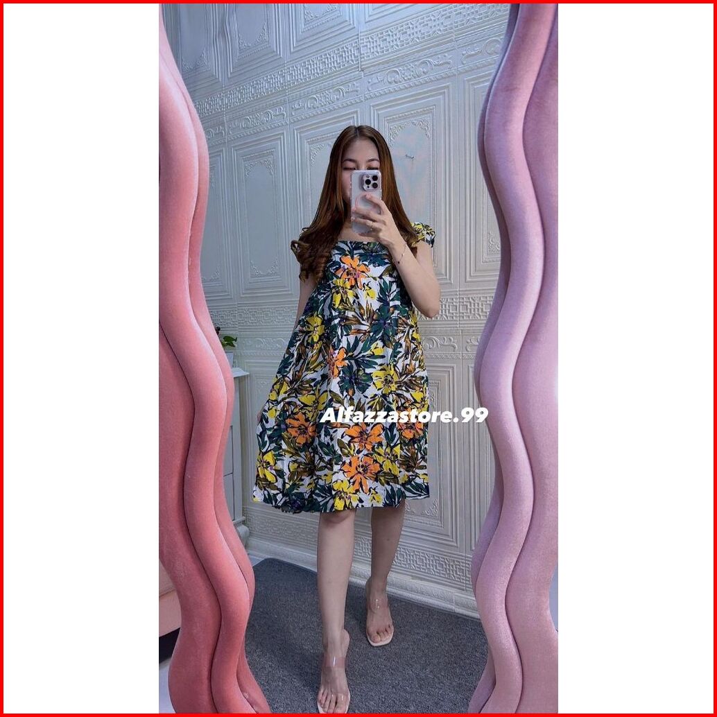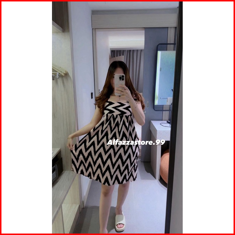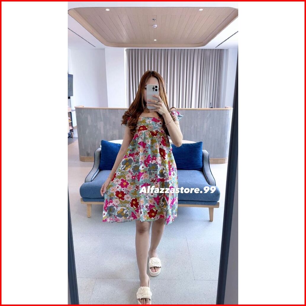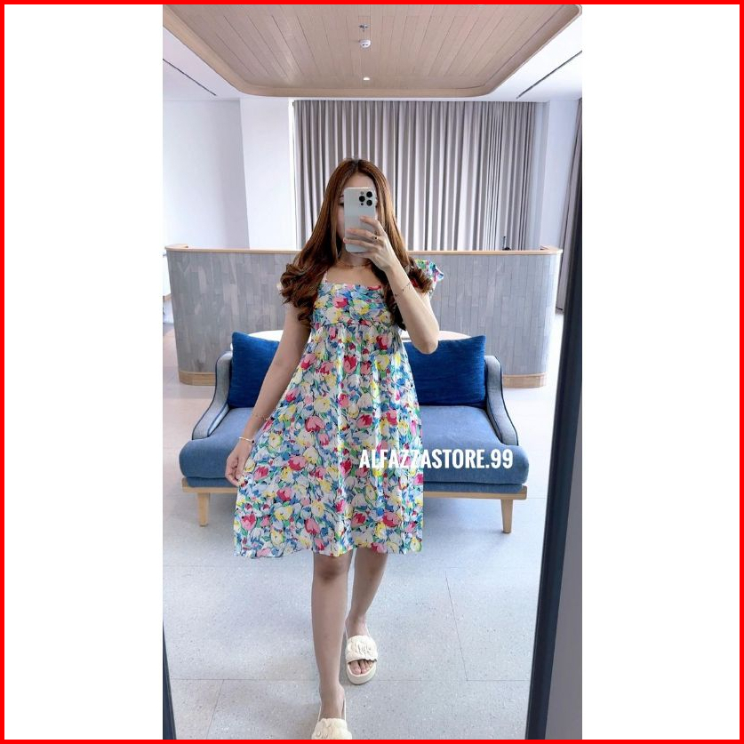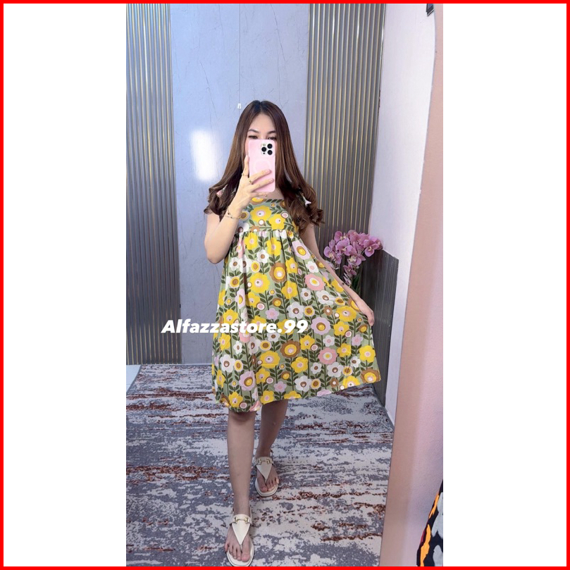 Alfazza Summer Dress Ruffle Babydoll Rayon Viscose Motif Adem Outfit Pantai Kekinian