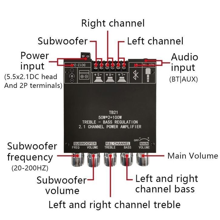 Promo Amplifier Mobil TB21 MT21 502MT TPA3116D2 Bluetooth 5.0 Penguat Subwoofer Papan 50WX2 + 100W 2.1 Channel Power