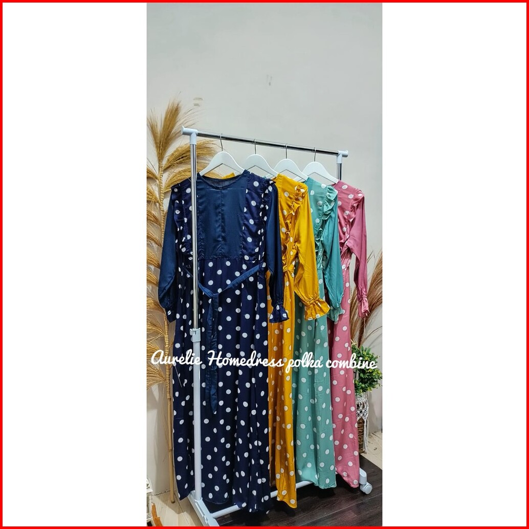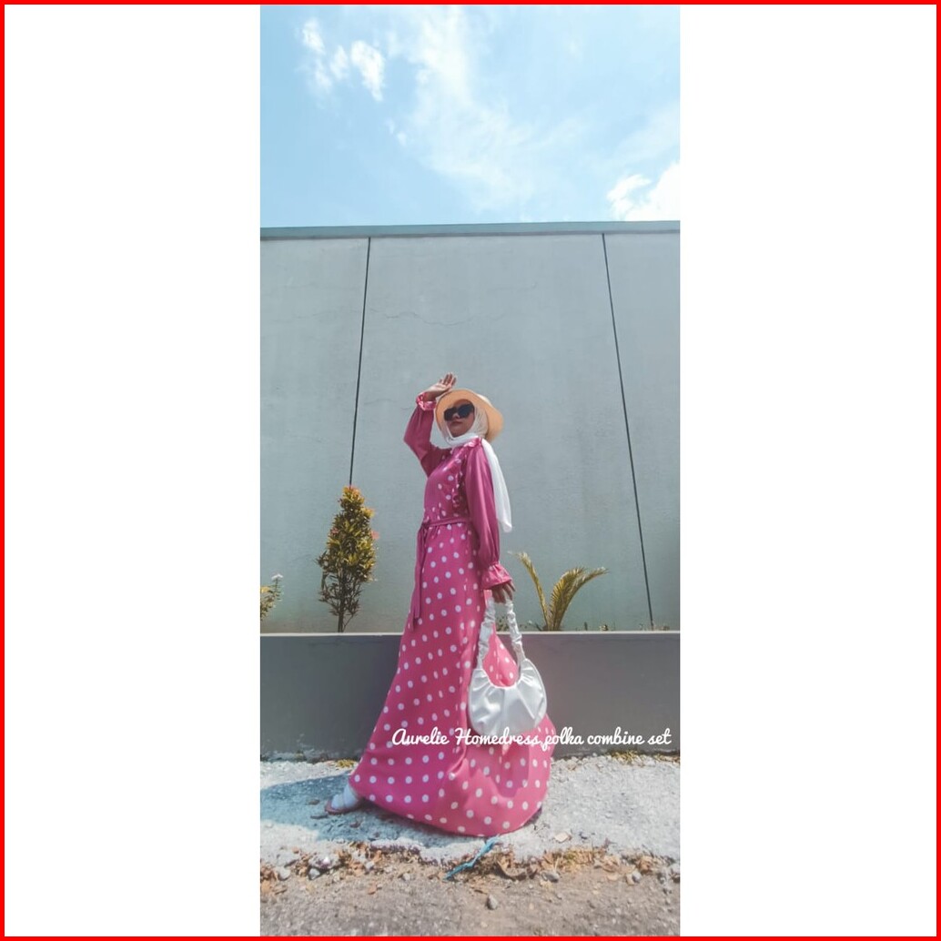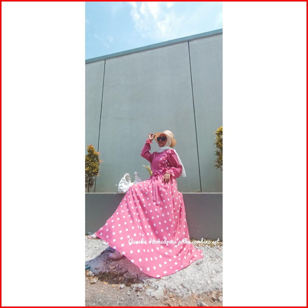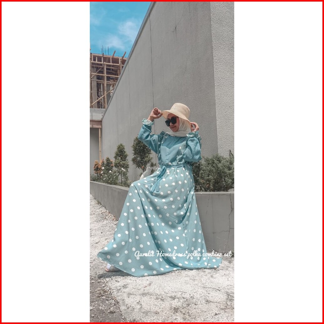 Gamis Wanita Jumbo Rayon Busui Kekinian Aurelie Homedress Polka Combine Set