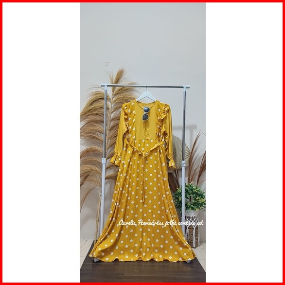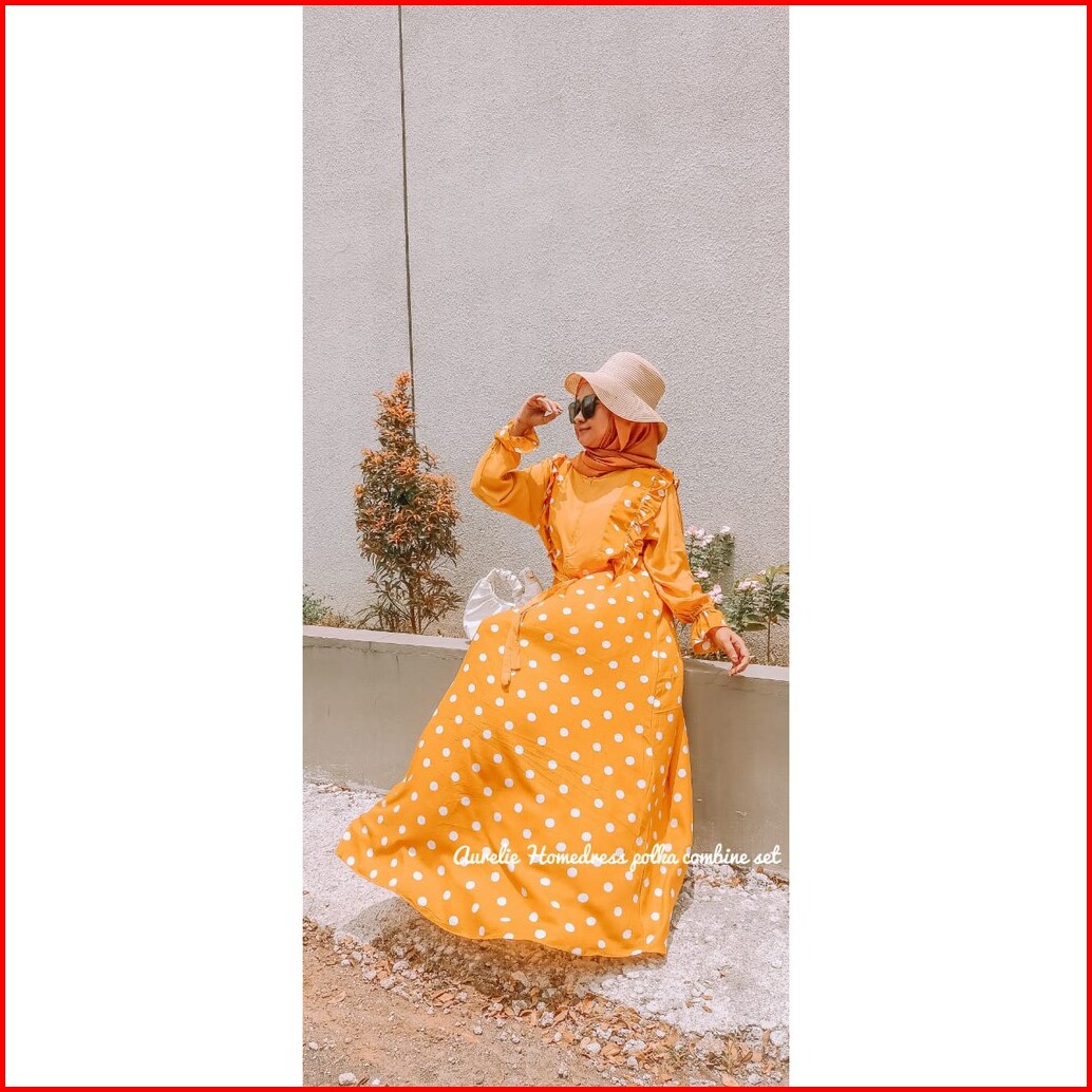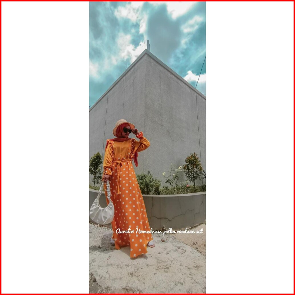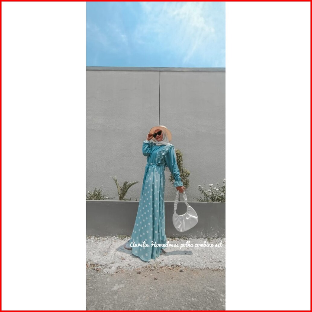 Gamis Wanita Jumbo Rayon Busui Kekinian Aurelie Homedress Polka Combine Set