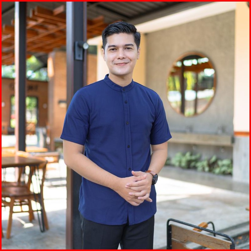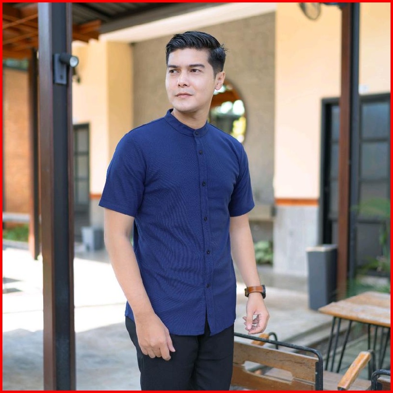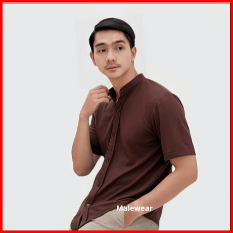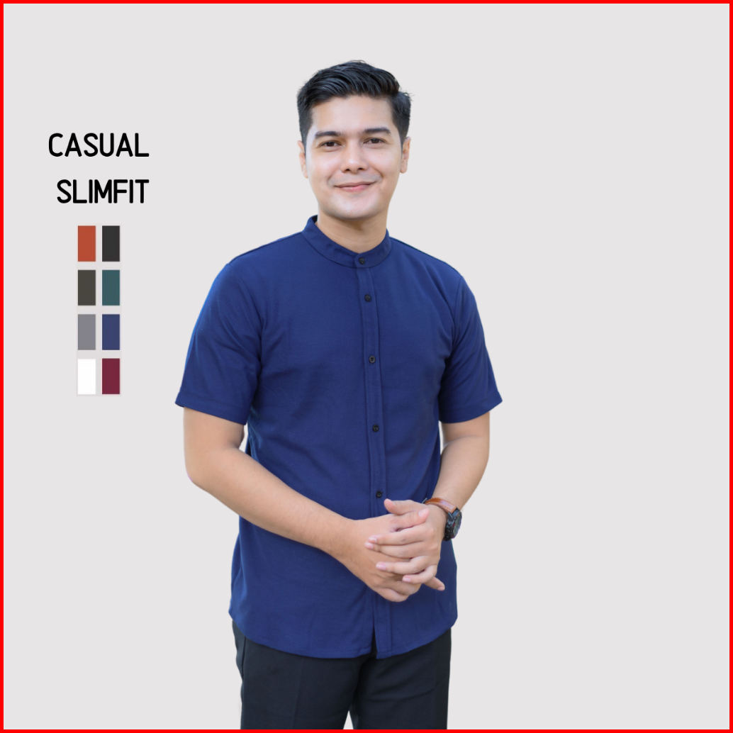 Kemeja Pria Lengan Pendek Kerah Sanghai Casual Polos Slimfit Size M - Xxl