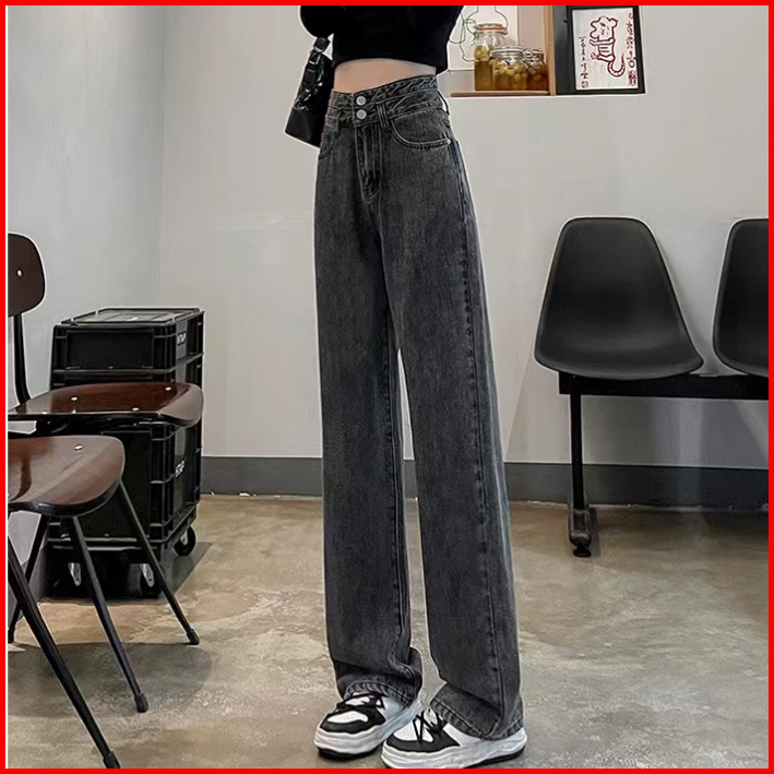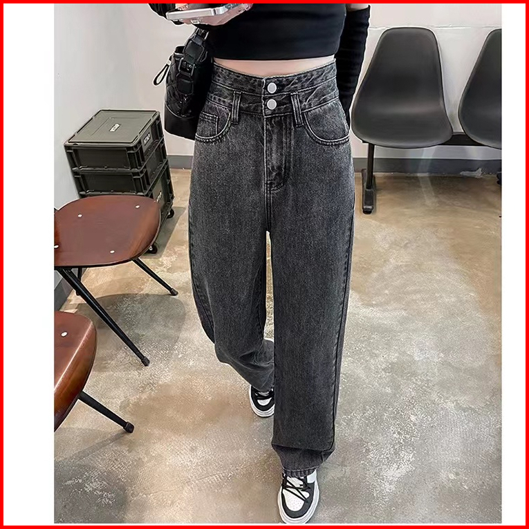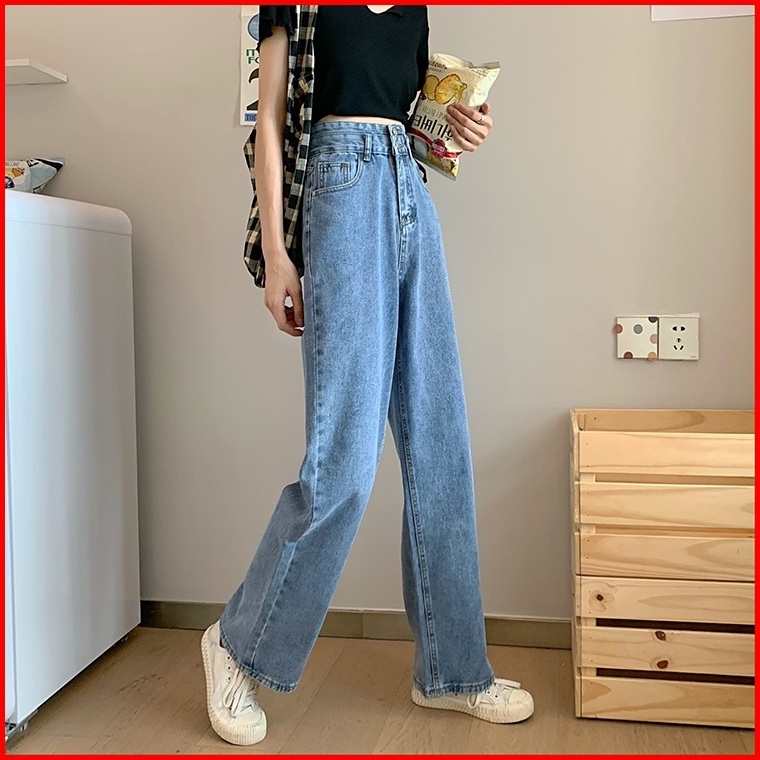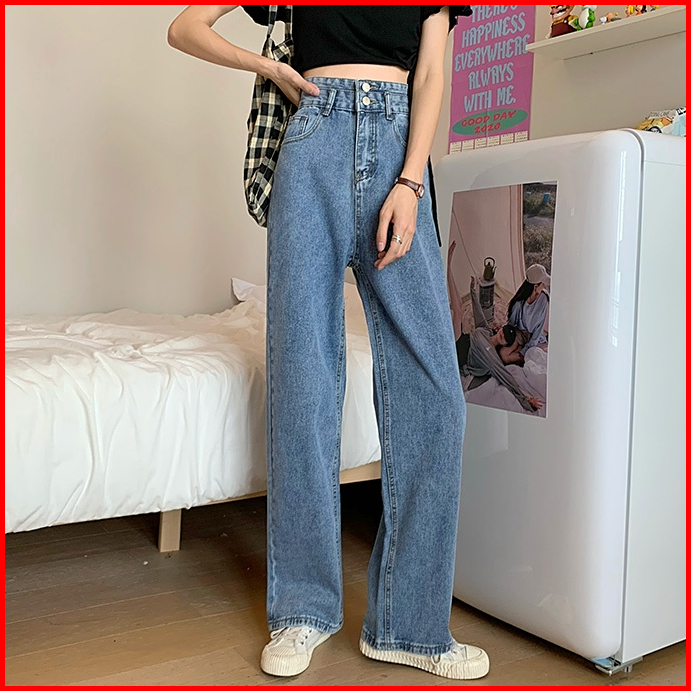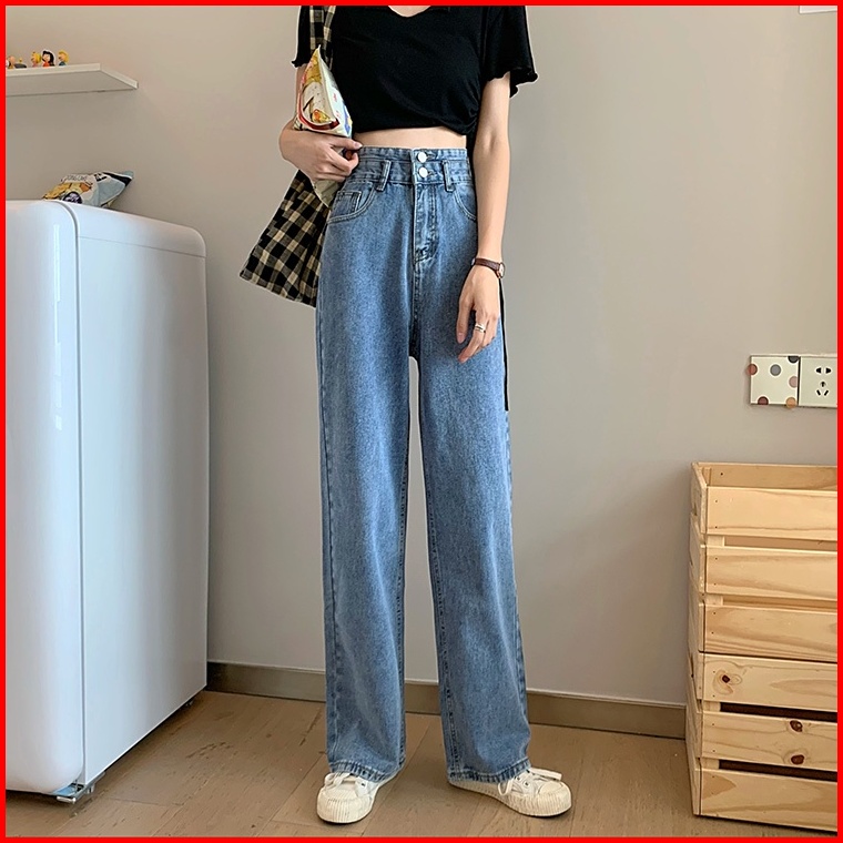 Korean Style Highwaist Jeans Celana Panjang Straight Pants Celana Jeans Wanita