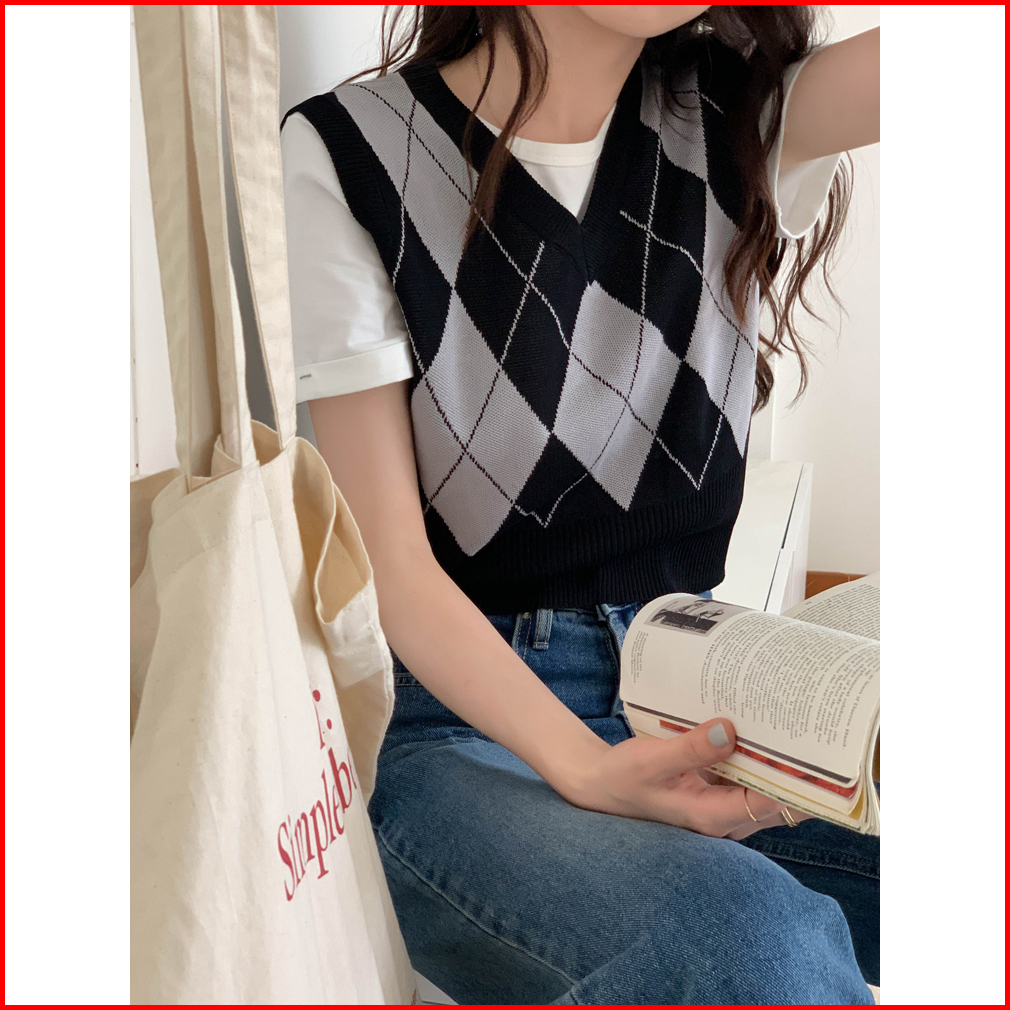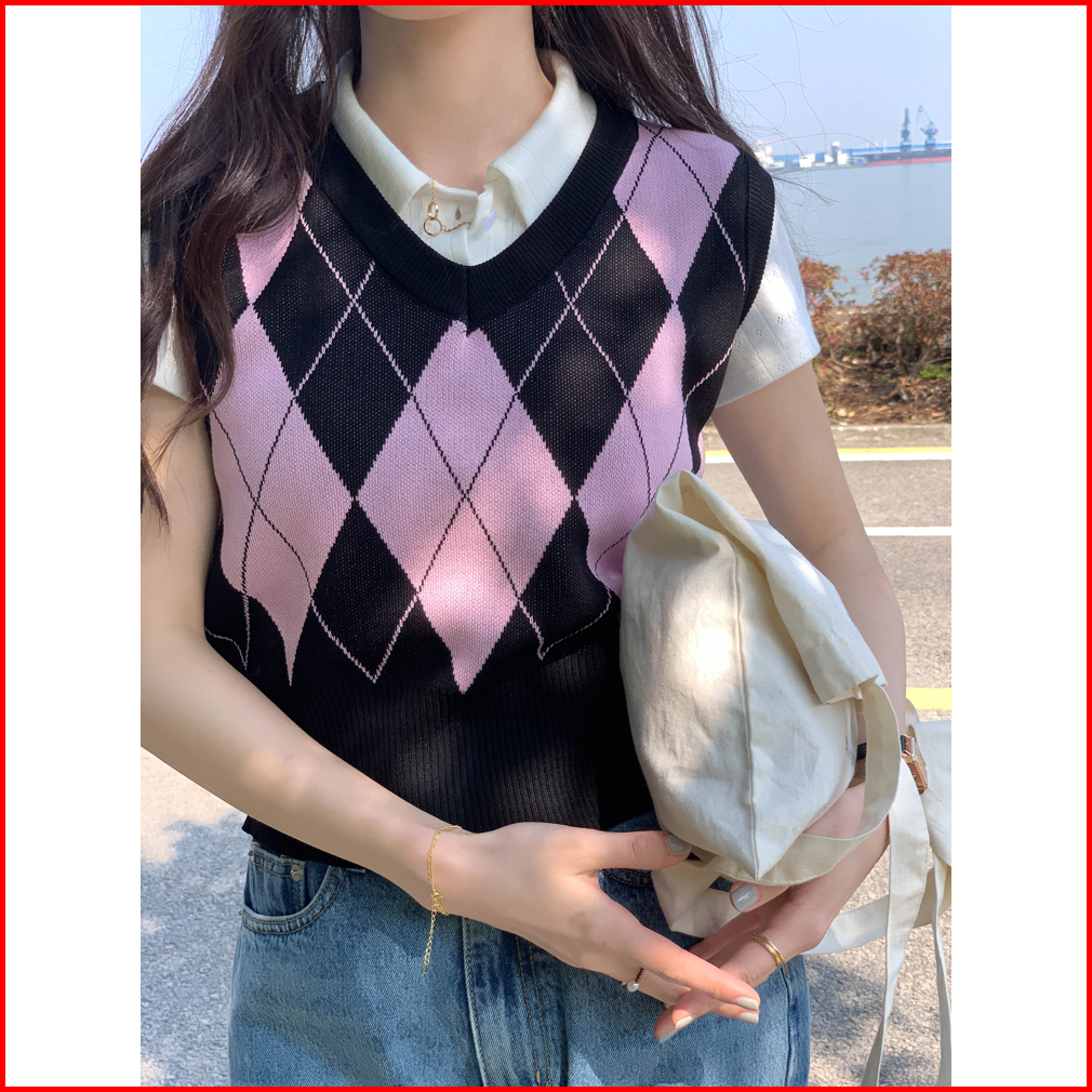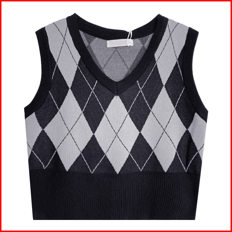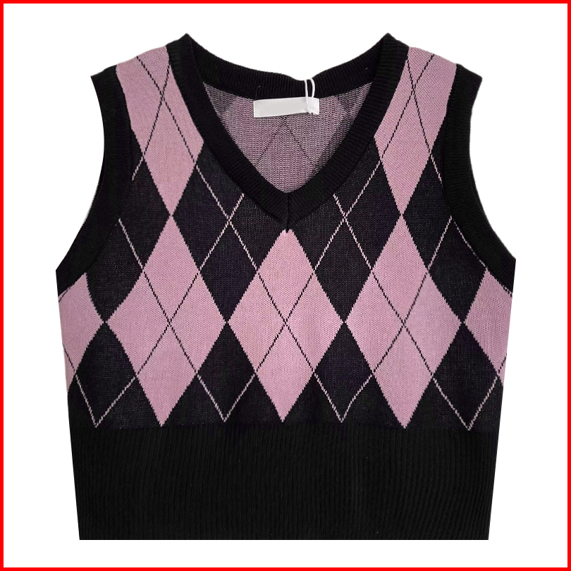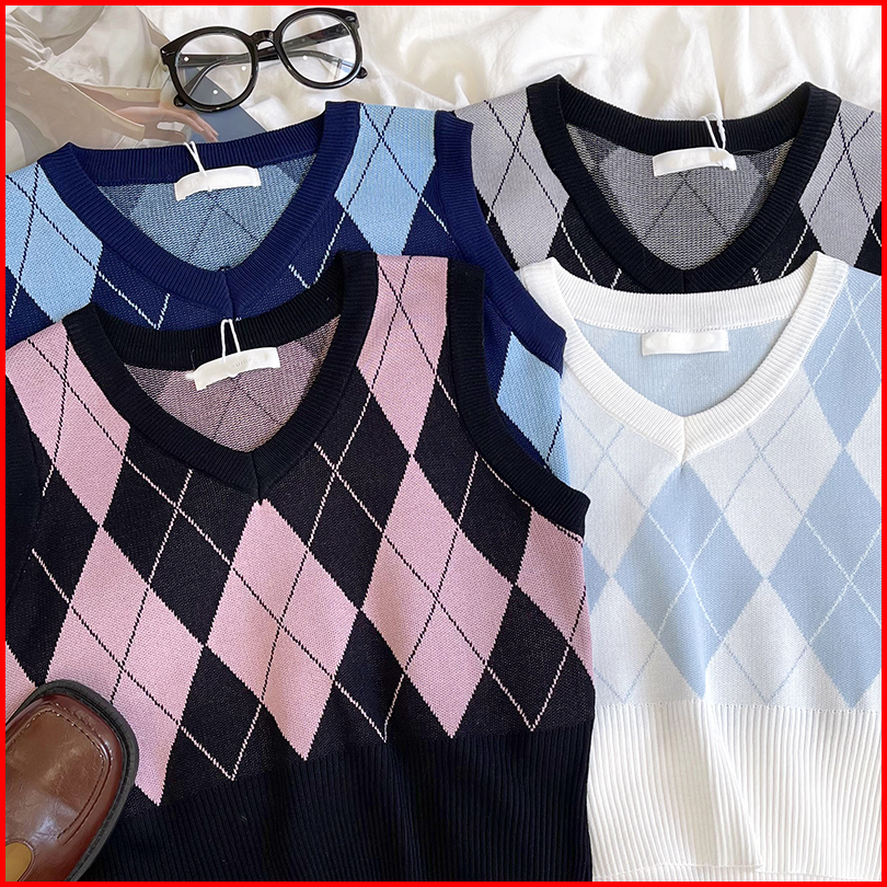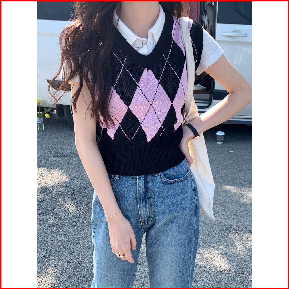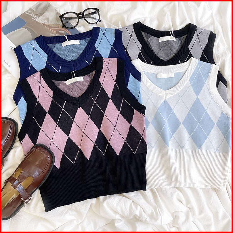 Korea Style Retro Kotak V-neck Tanpa Lengan Kasual Crop Top Knit Rompi Rajut Wanita Korea Tanktop Tank Top Wanita