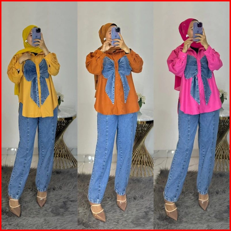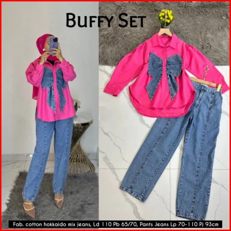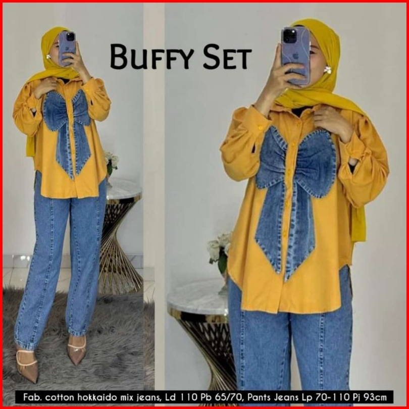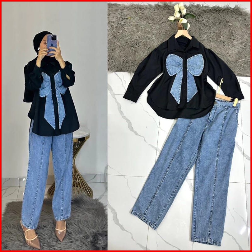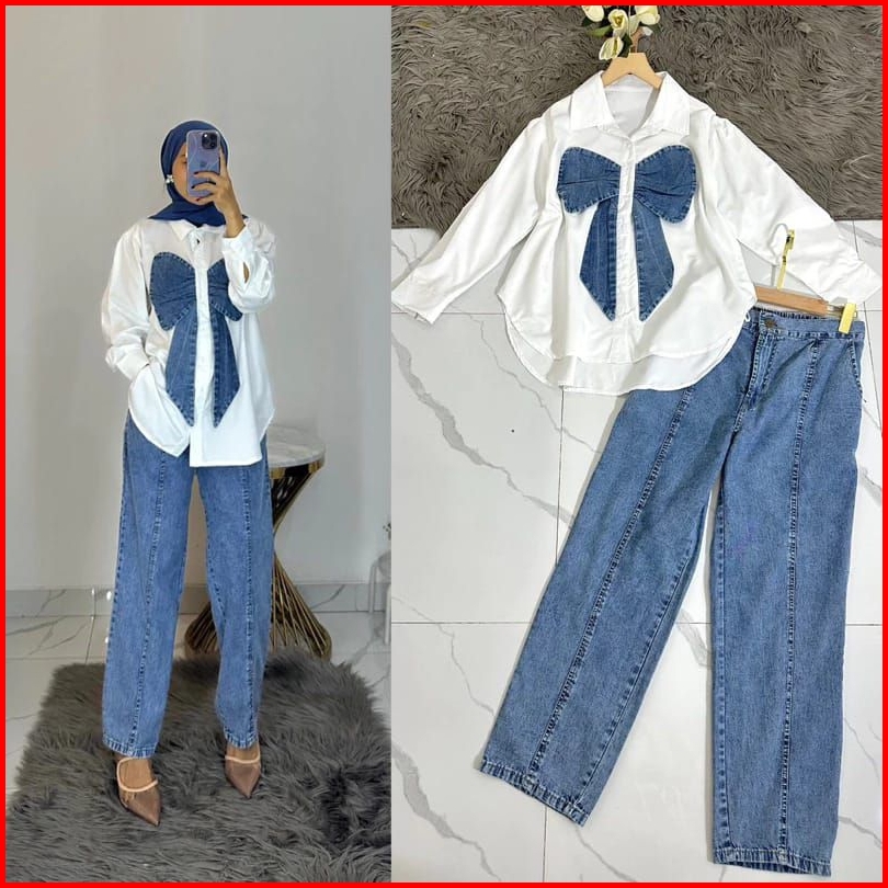 Ootd One Set Buff Stelan Jeans Pita Wanita