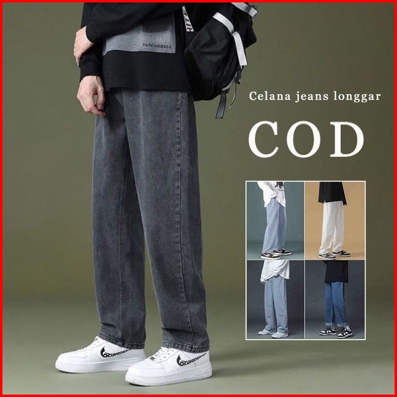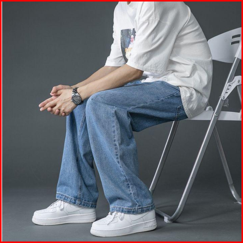 Celana Jeans Pria Baggy Pants Korean Style Oversize Loose Blue Jeans Straight Kulot Boyfriend Jeans Longgar Celana Cowo