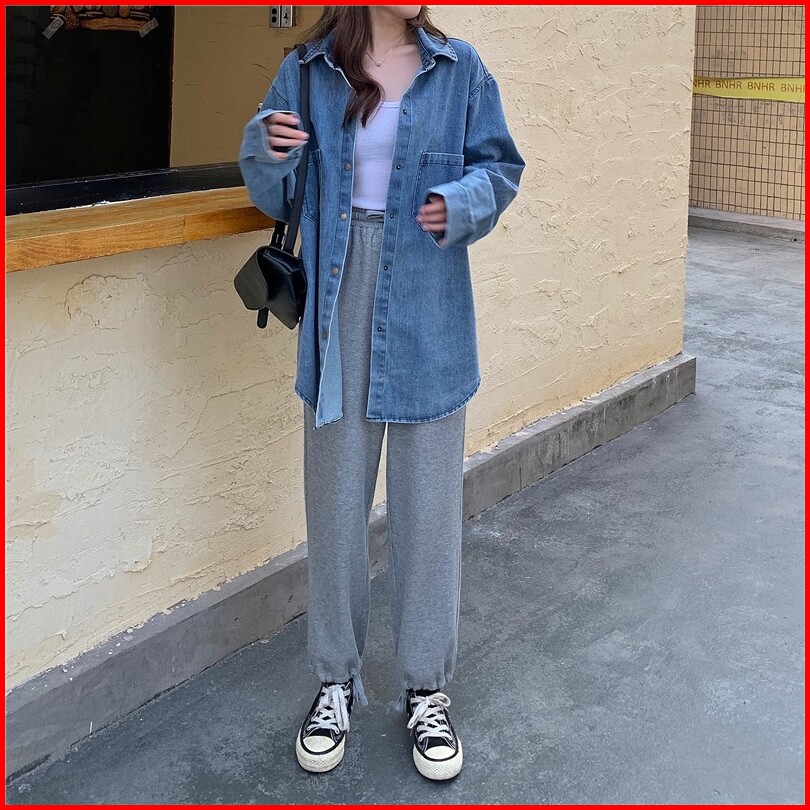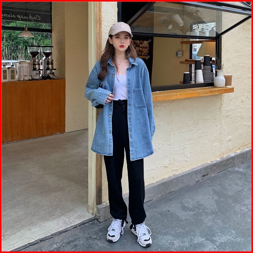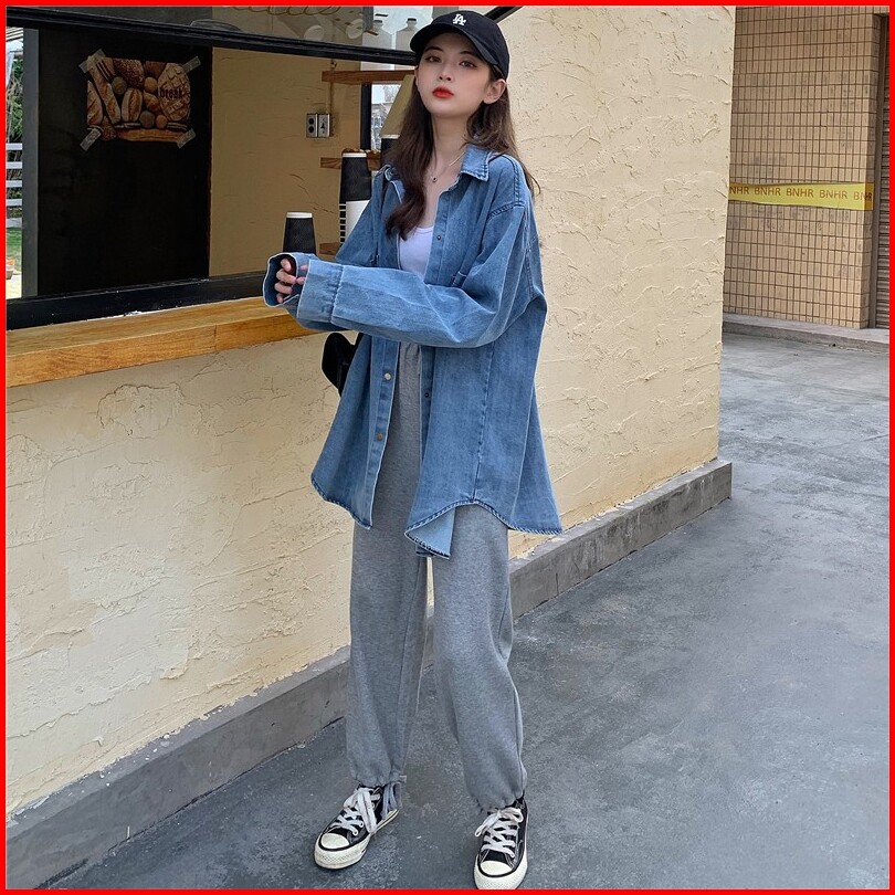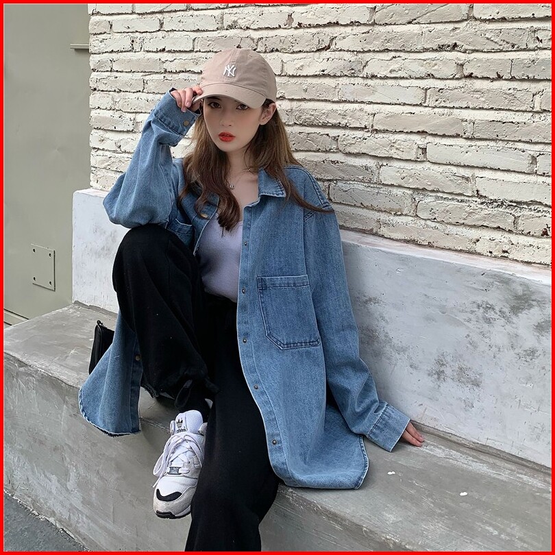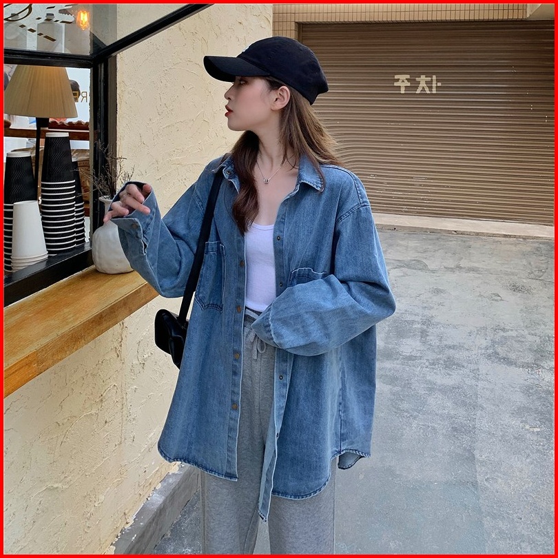 Korea Style Baru Jaket Kemeja Denim Atasan Oversize Denim Wanita Lengan Panjang Jaket Atasan Wanita