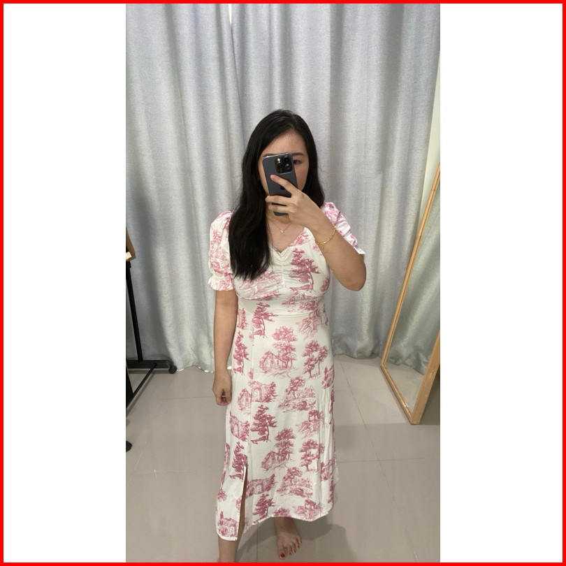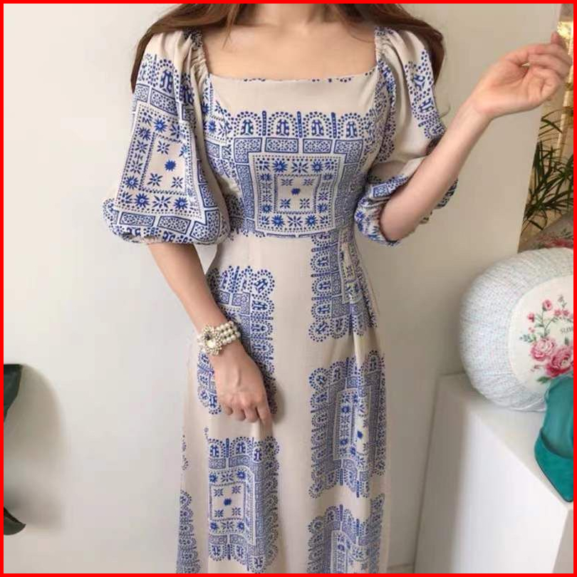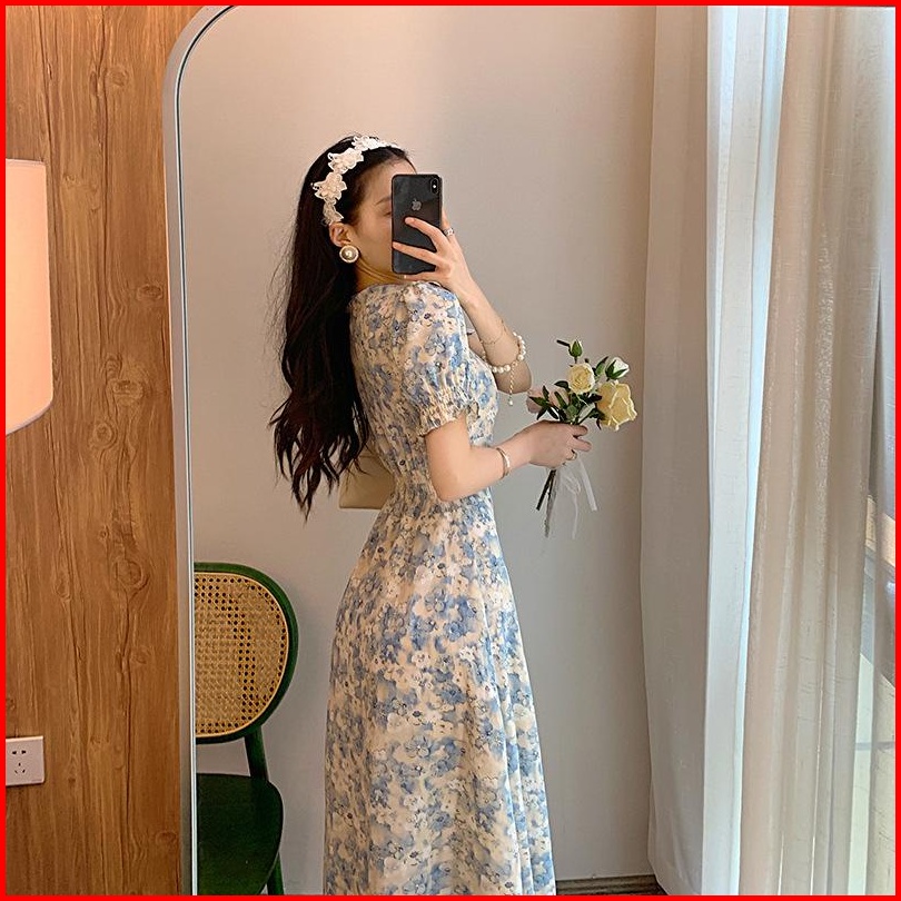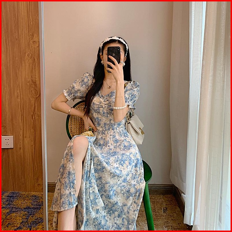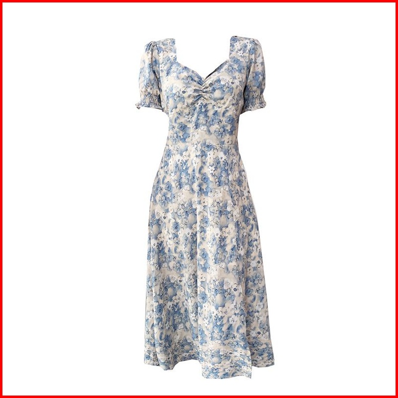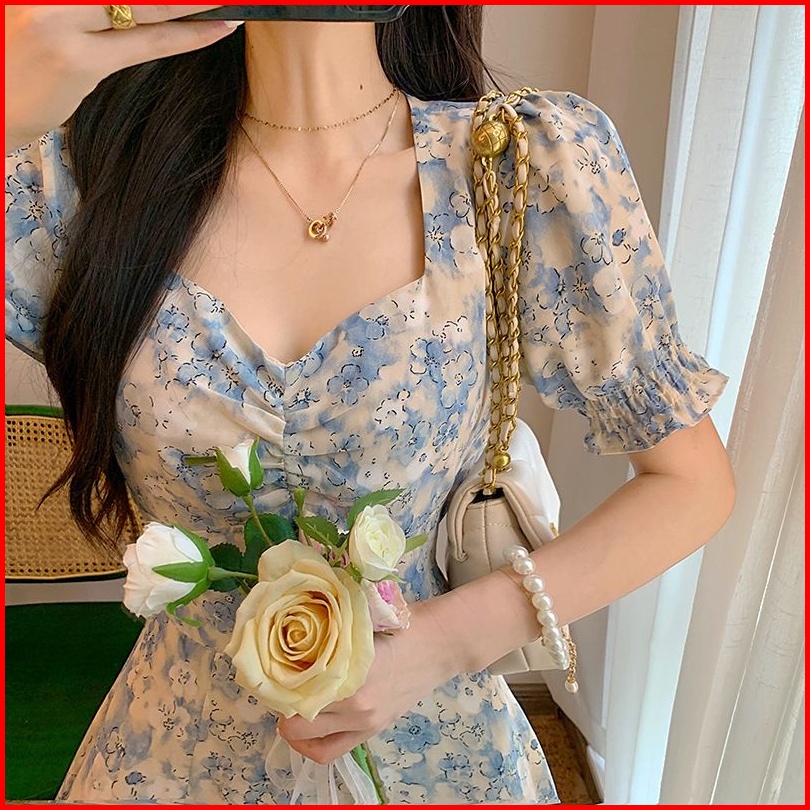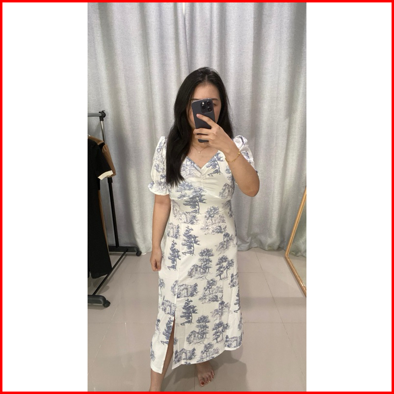 Dress Jumbo - Zlore - S-xxl Dr34 Dress Bunga Wanita Model V Neck Motif Biru Muda