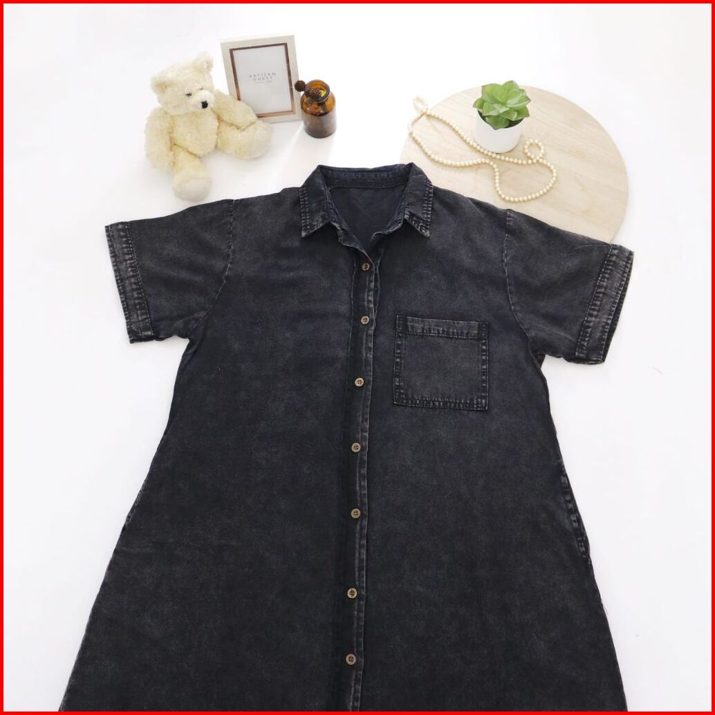 Nando Dress Denim Biru Dan Snow Denim Bahan Jeans Premium Lengan Pendek Kasual Simple Saku Satu 9081
