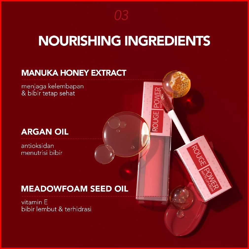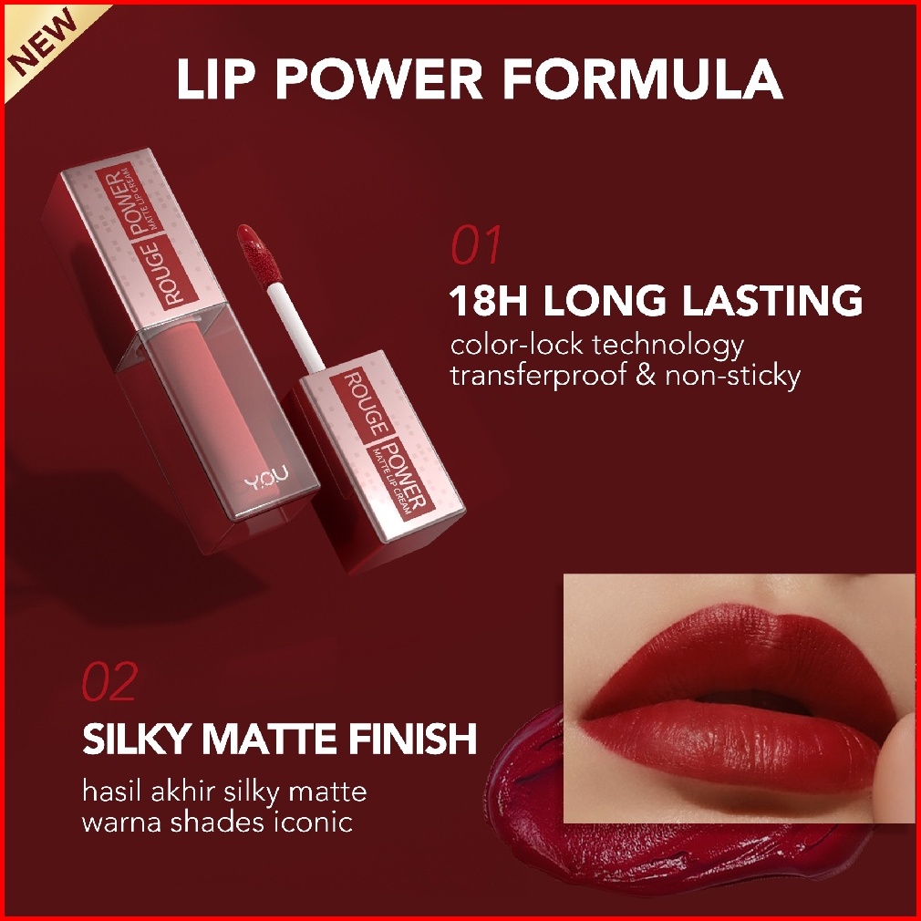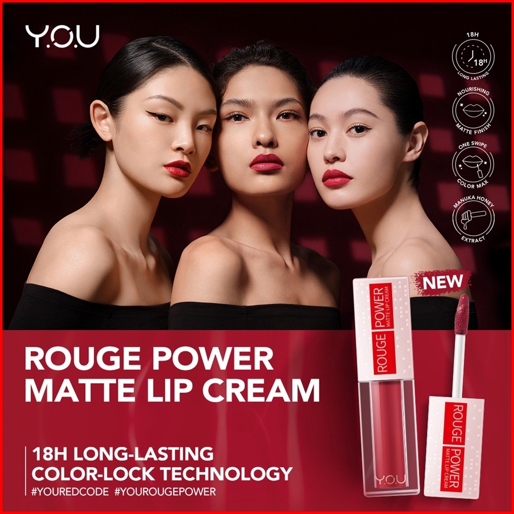 You Rouge Power Matte Lip Cream Lipstik Matte Finish Tahan Lama Nourishing With Manuka Honey Kosmetik