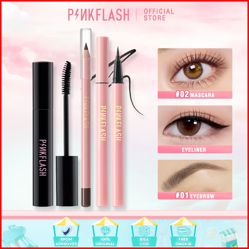 Pinkflash Eyes Makeup Set Eyeliner Eyebrow Pencil Waterproof Maskara Tahan Air