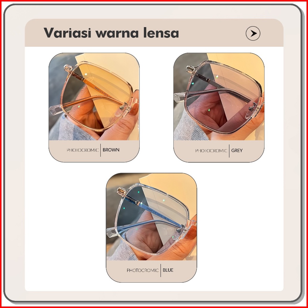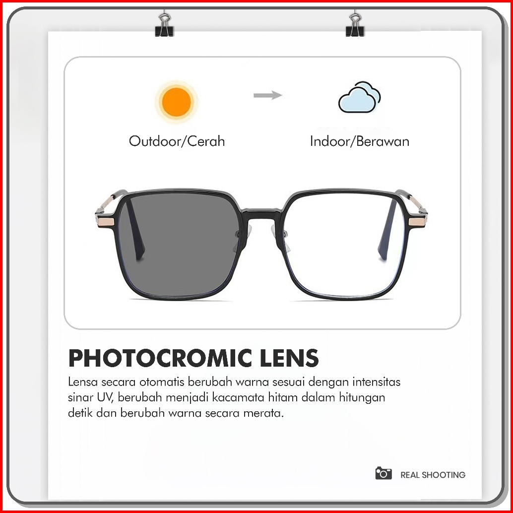 Colore.in Kacamata Photocromic Minus Anti Blueray Radiasi Bluecromic Geometri Metal Tr-90 - 2055
