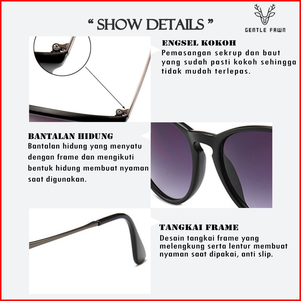 Gentle Fawn Kacamata Hitam Sunglasses Anti Uv Tr90 Metal Design Mewah Fashion Wanita Style Vintage Terbaru 1567