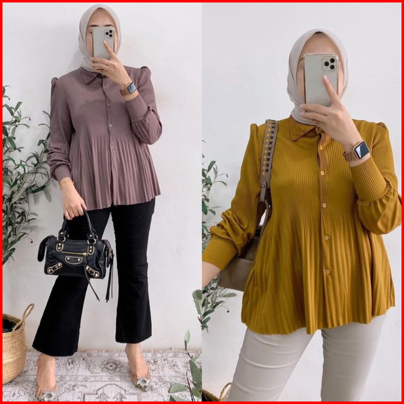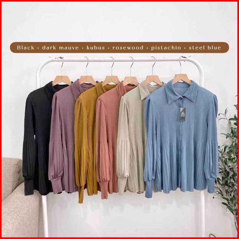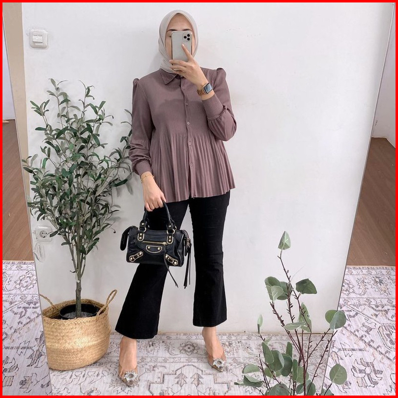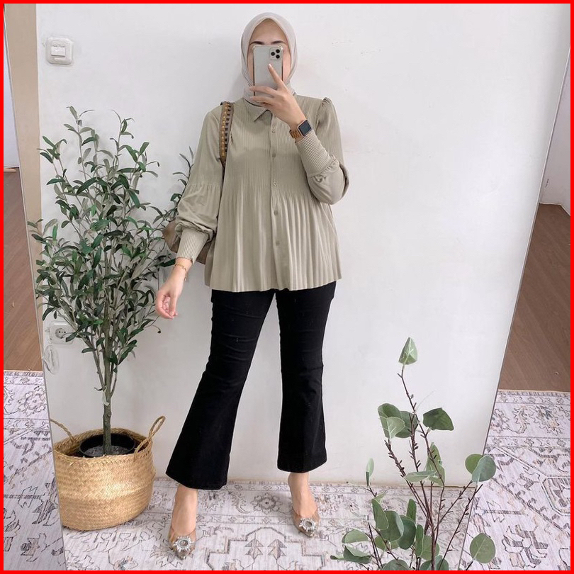 Alaska Top Blouse Plisket Clarissa Kemeja Crincle Plisket Lidi