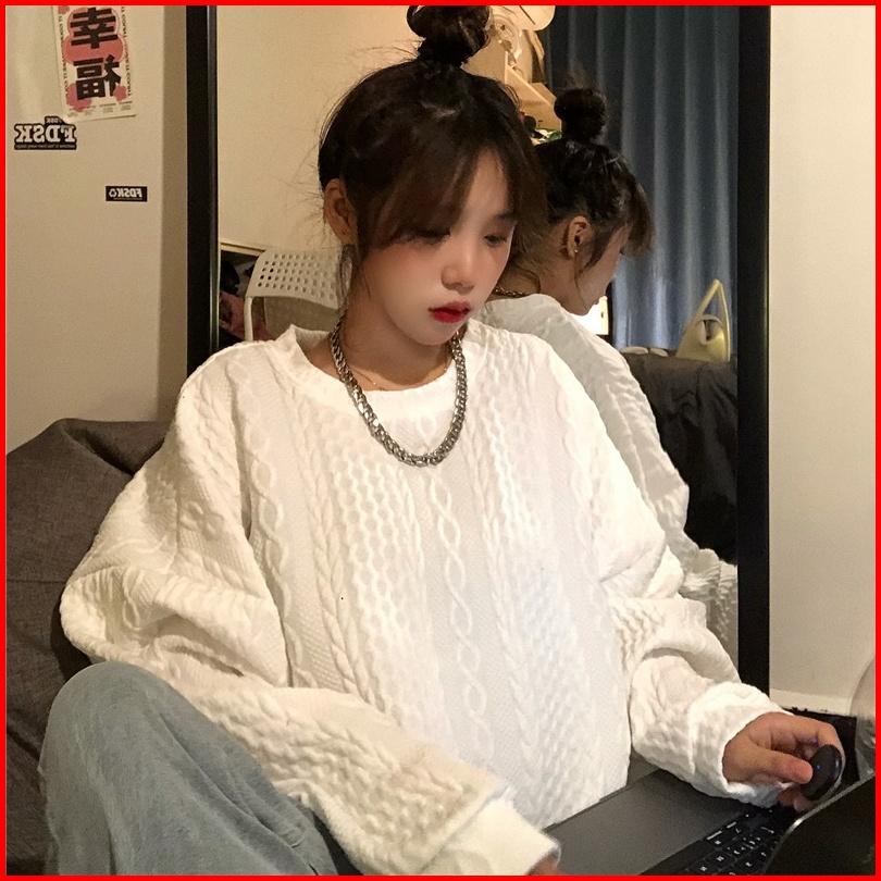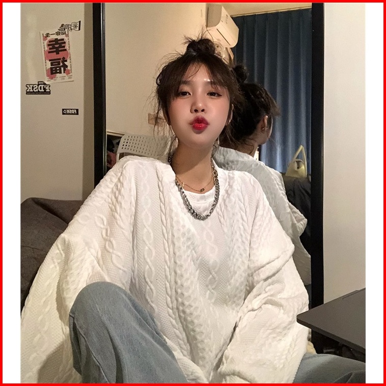Chaoo.id Sweter Wanita Sweater Putih Oversize Retro Wanita Korean Style Atasan Baju Wanita Kekinian Sweeter Korean Style
