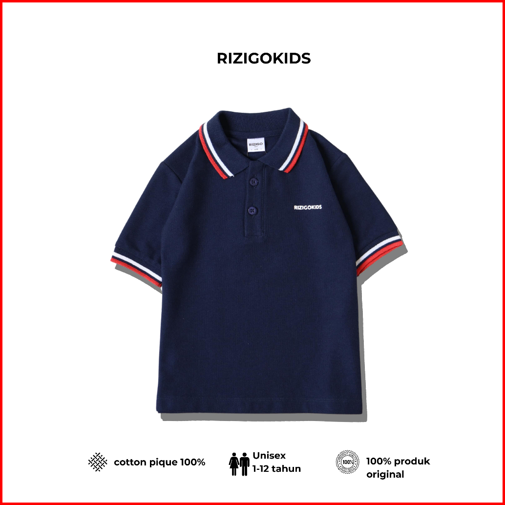 Rizigo Kids Baju Kaos Polo Anak Laki-laki Stripe Cvc Pique 24s Lengan Pendek Adem Usia 212 Tahun