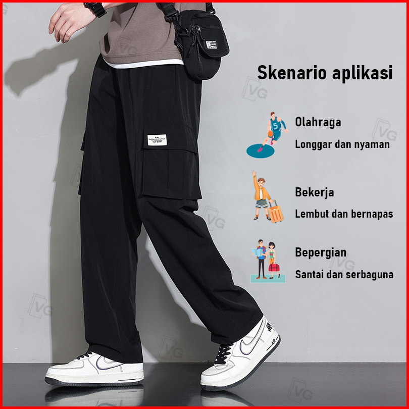 Celana Cargo Panjang Pria Korean Style Celana Kargo Loose Pants Casual Original Cargo Pants Pria