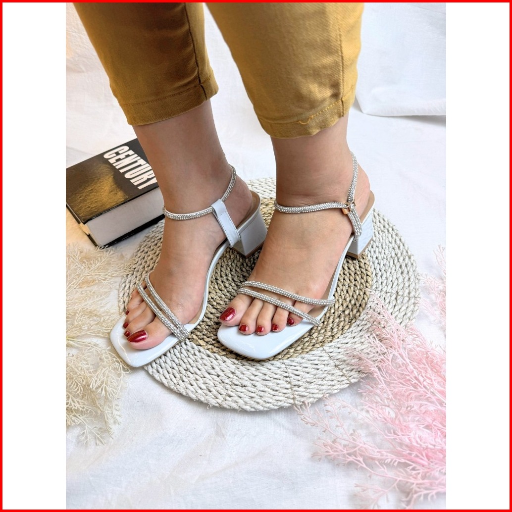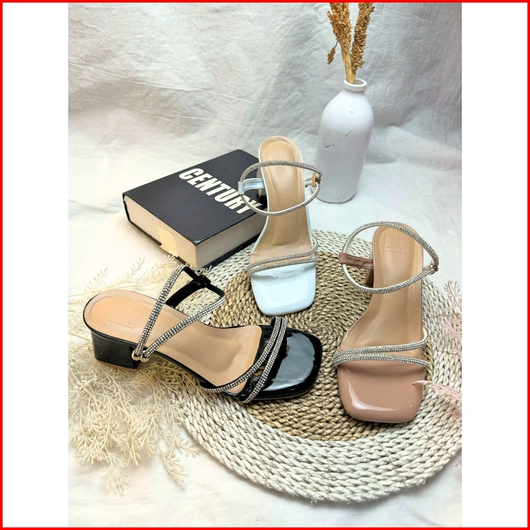 Abbushoes Sandal Heels Hak Tahu Premium Tali Permata Import Gelis 5cm - Ri 10