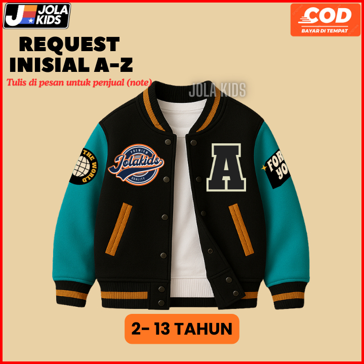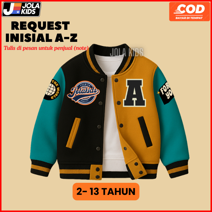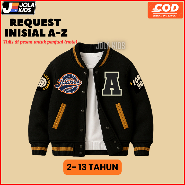 Jaket Varsity Baseball Anak Laki Laki Perempuan Request Inisial Umur 2-12 Tahun Jolakids