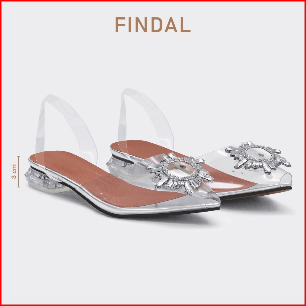 Findal Sandal Flat Wanita 3cm Hak Kaca Elegan Sendal Slingback Kekinian Slip On Bening Di-074