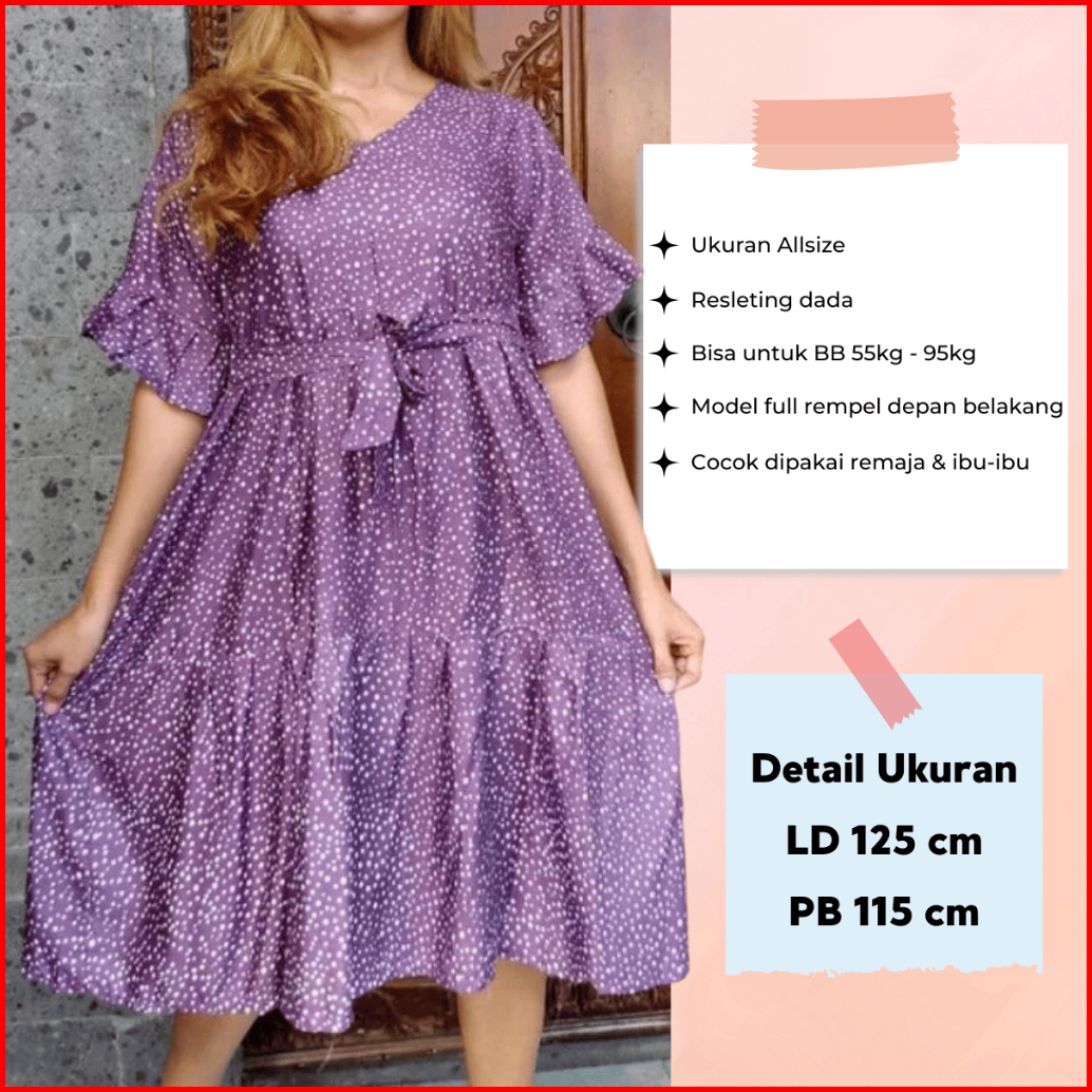 Daster Kekinian Dress Wanita Busui Jumbo Resleting Depan Baju Wanita Home Dres Korean Style Polka Rayon Premium