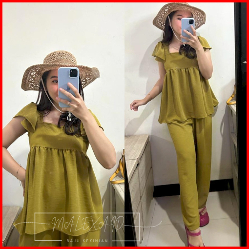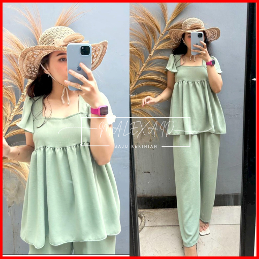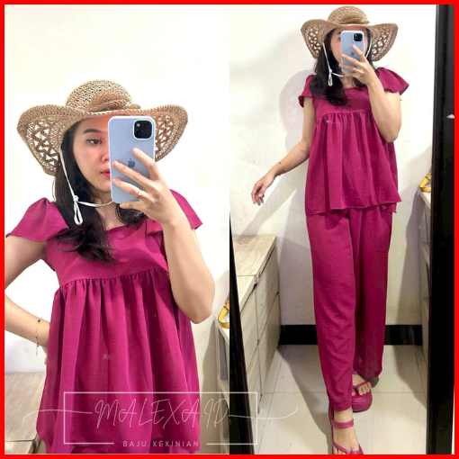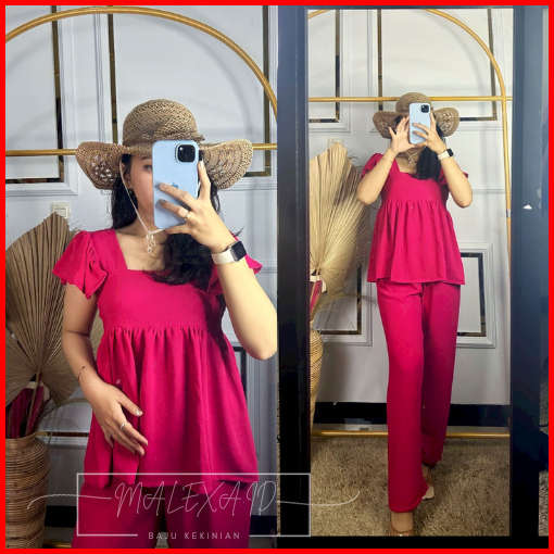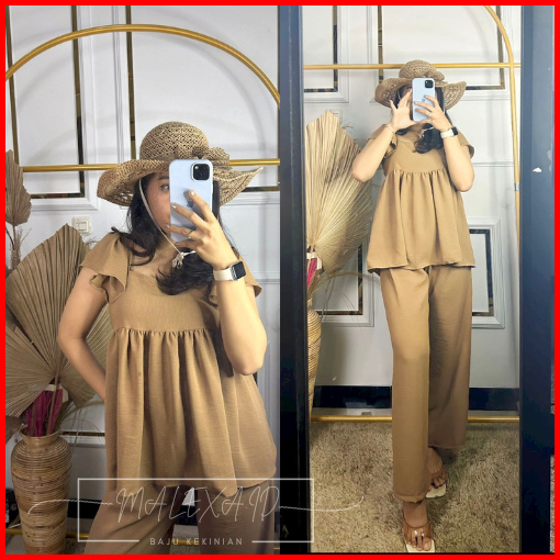 Malexa .id - Jema Oneset Crinkle Premium Babydoll Oneset Setelan Crinkle Airflow