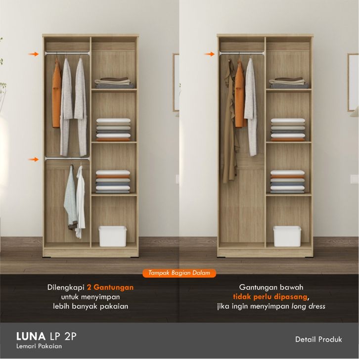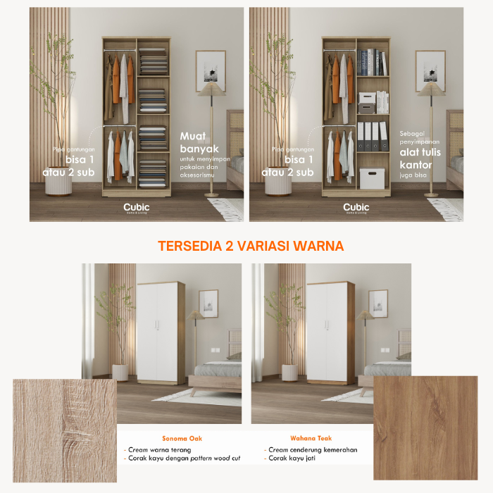 Cubic Lemari Pakaian Minimalis / Wardrobe Baju 2 Pintu / LUNA LP 2P