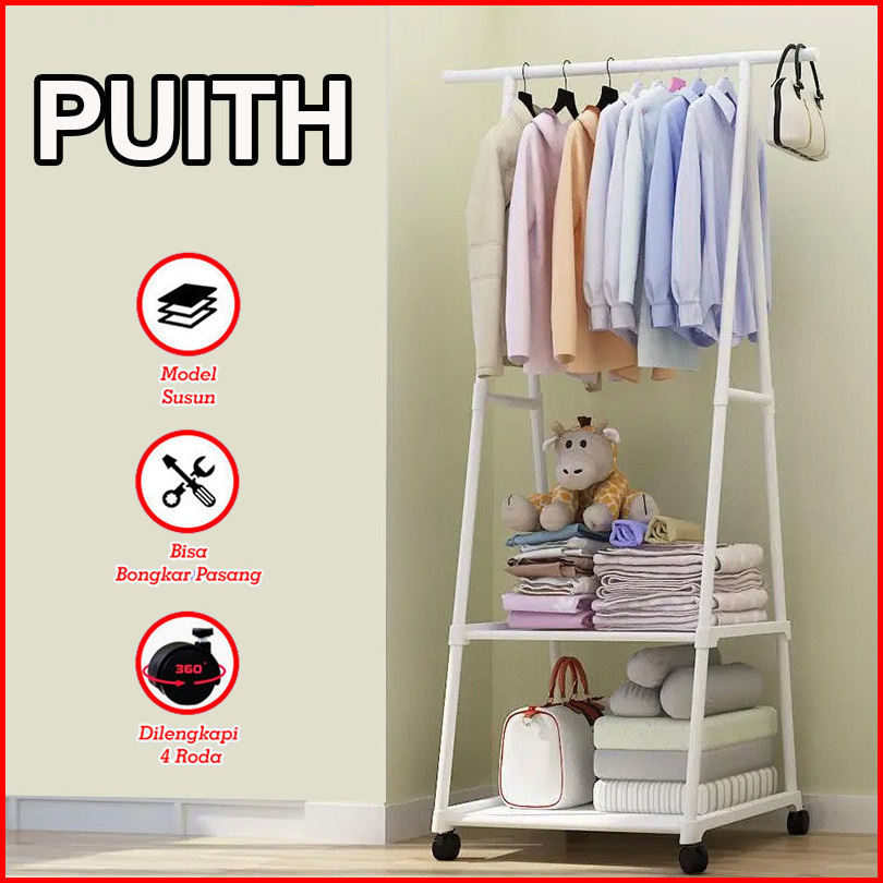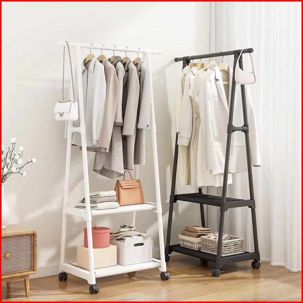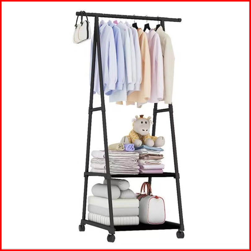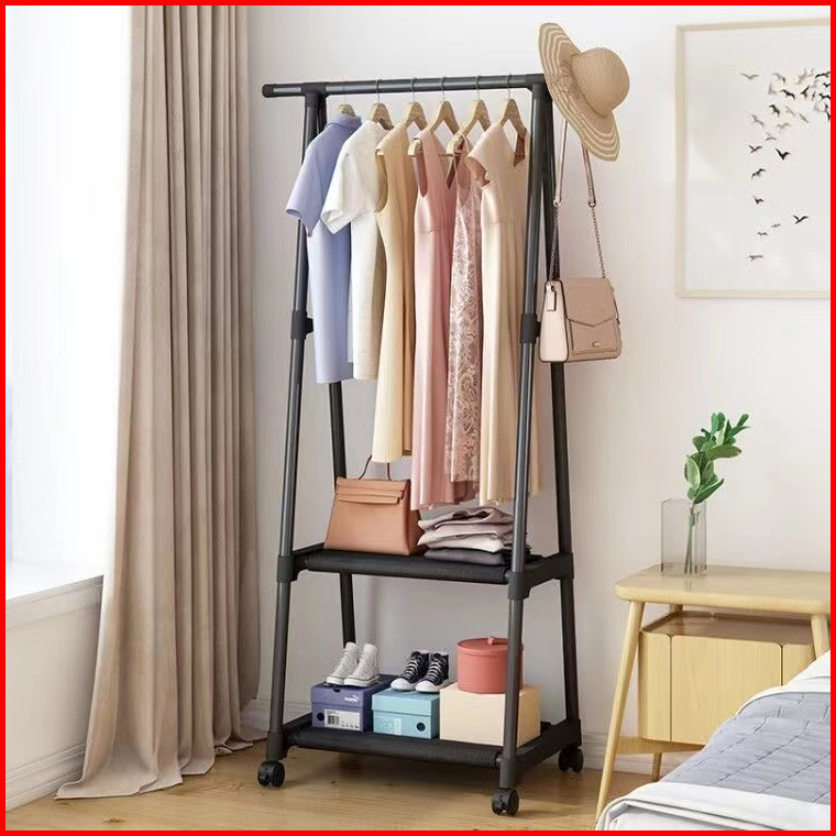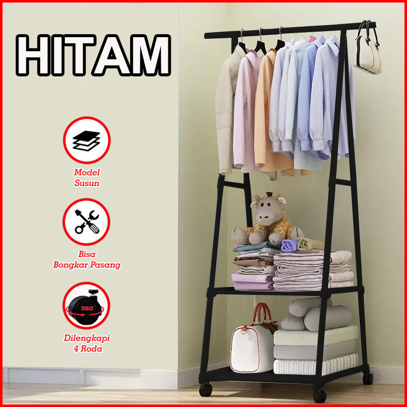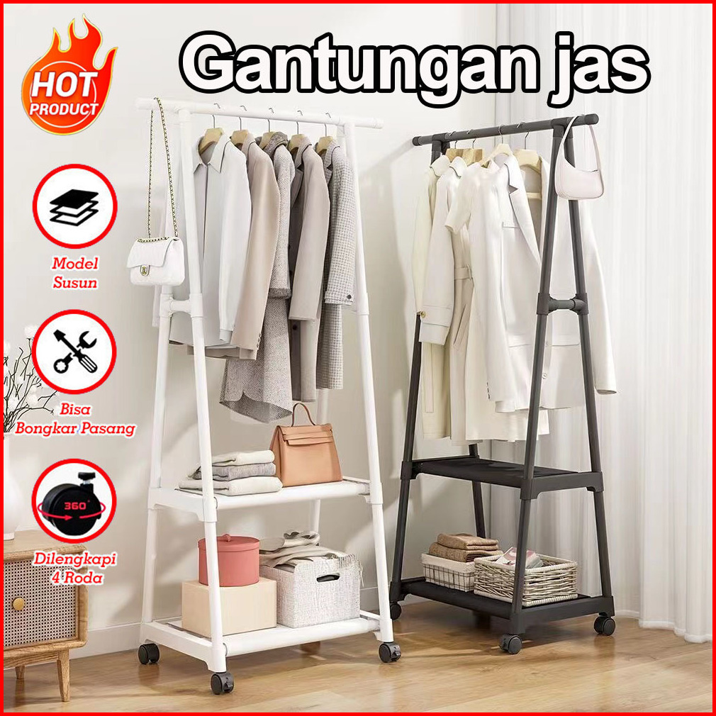 Triangle Stand Hanger Baju Rak Buku Rak Pakaian Rak Gantungan Baju Rak Susun Serbaguna Tempat Baju Dengan 4 Roda