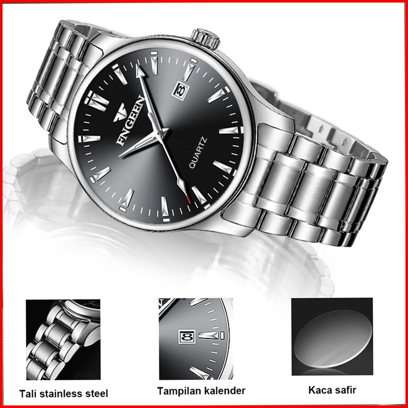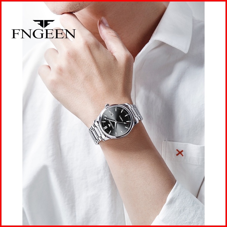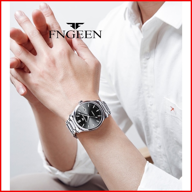 Fngeen 2111 Jam Tangan Pria Fashion Kasual Bisnis Stainless Steel Quartz Original Anti Air Watch Terbaru