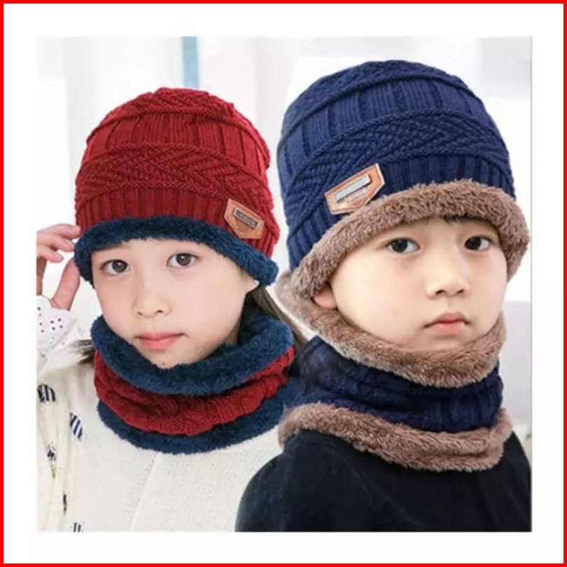 Topi Kupluk Rajut Anak Beanie Dan Syal Set Kupluk Beanie Anak Topi Kupluk Set Anak
