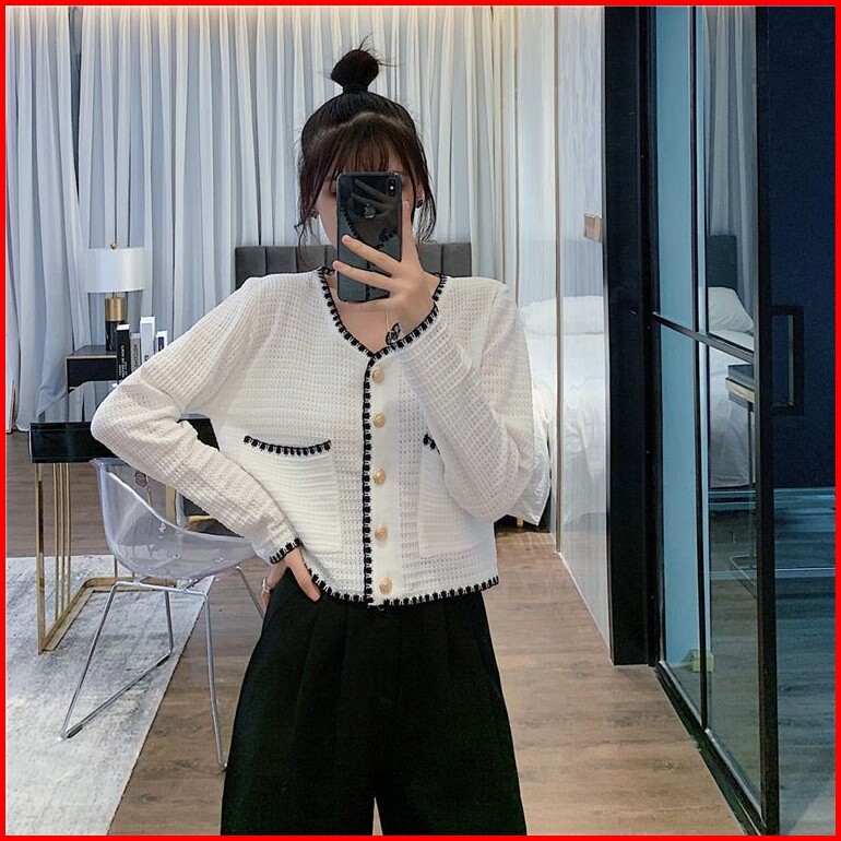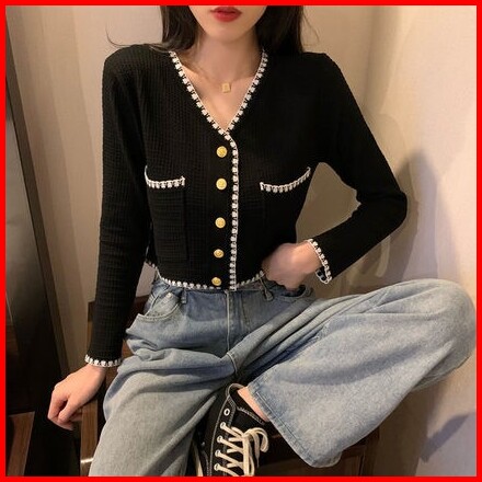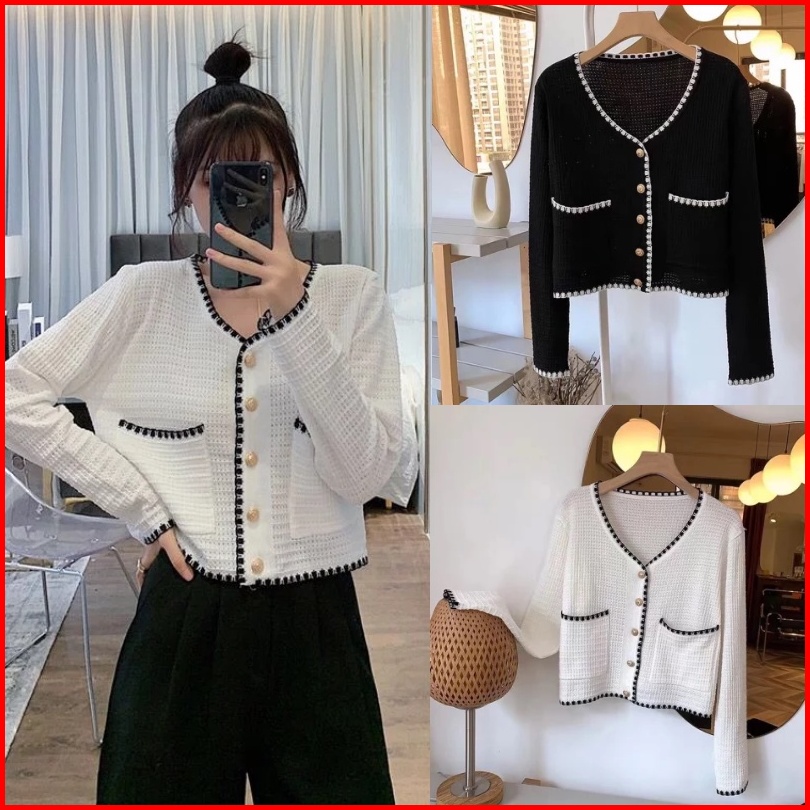 Blouse Panjang Ramping-fit Single-breasted Es Sutra Rajutan Atas Cardigan Perempuan