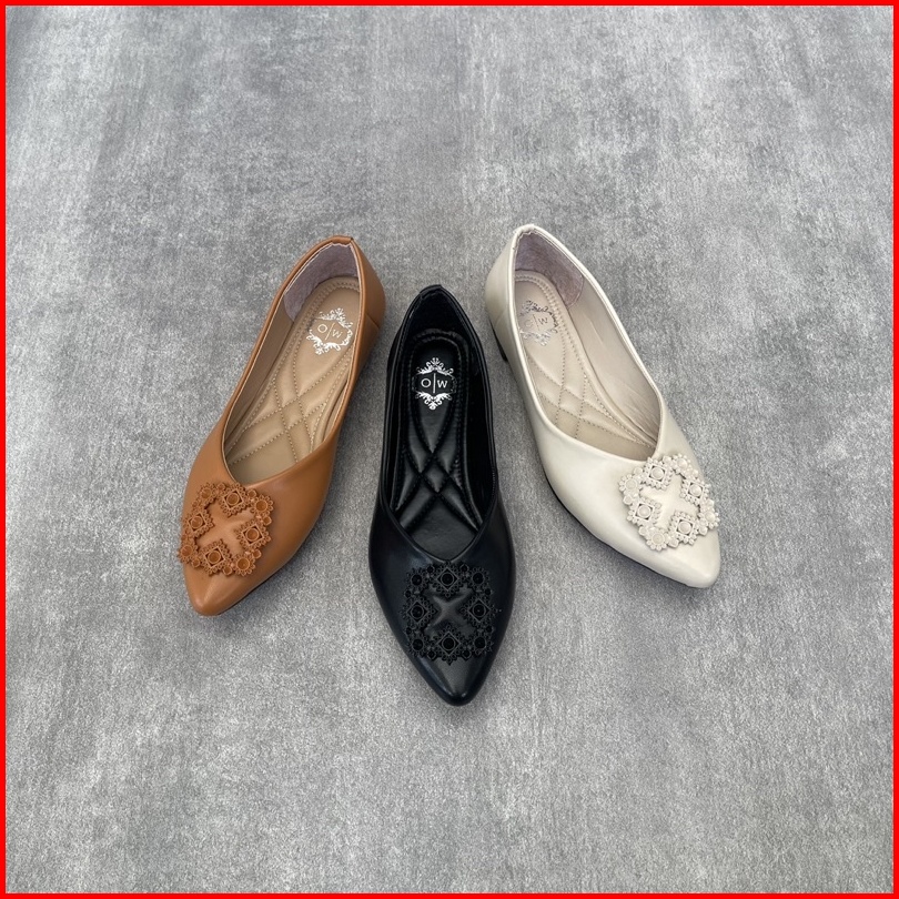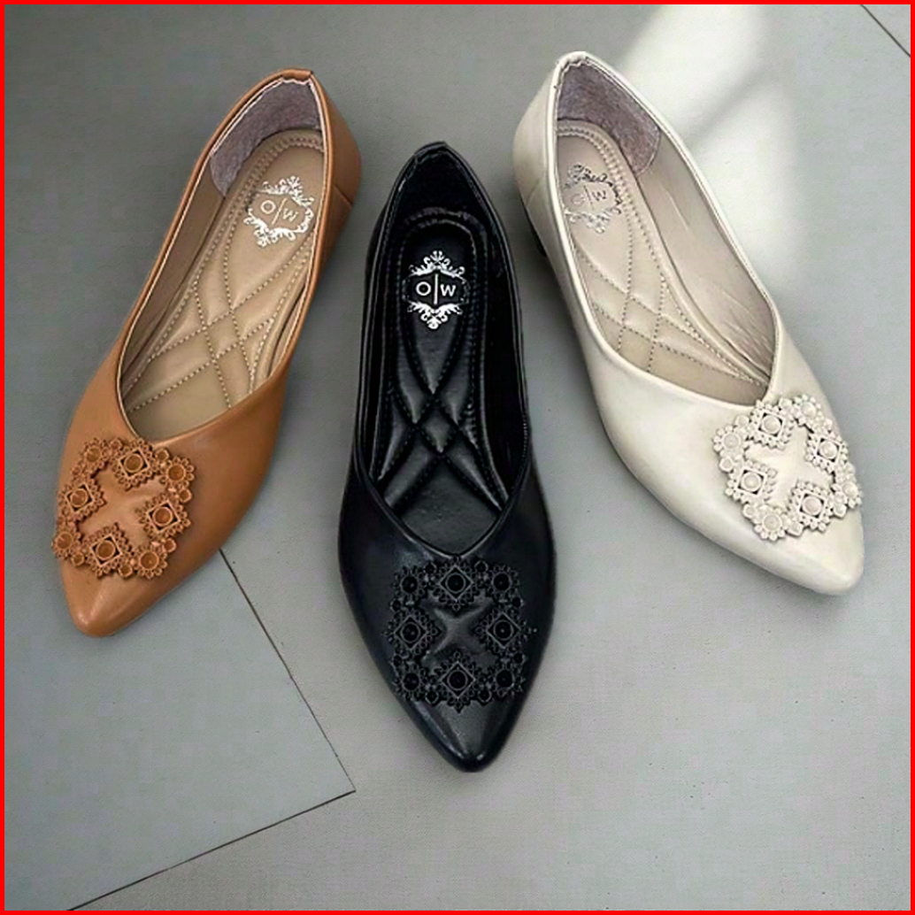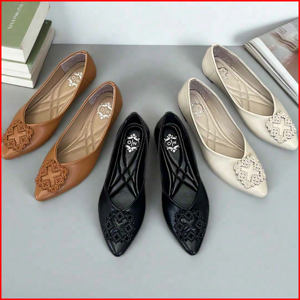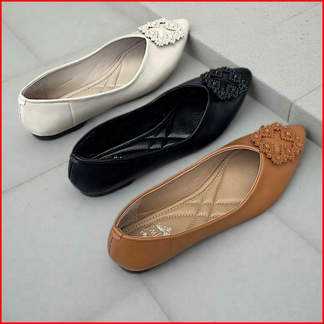 Faduzzi Sepatu Wanita Flat Mizuki Ujung Lancip Decorasi Logam