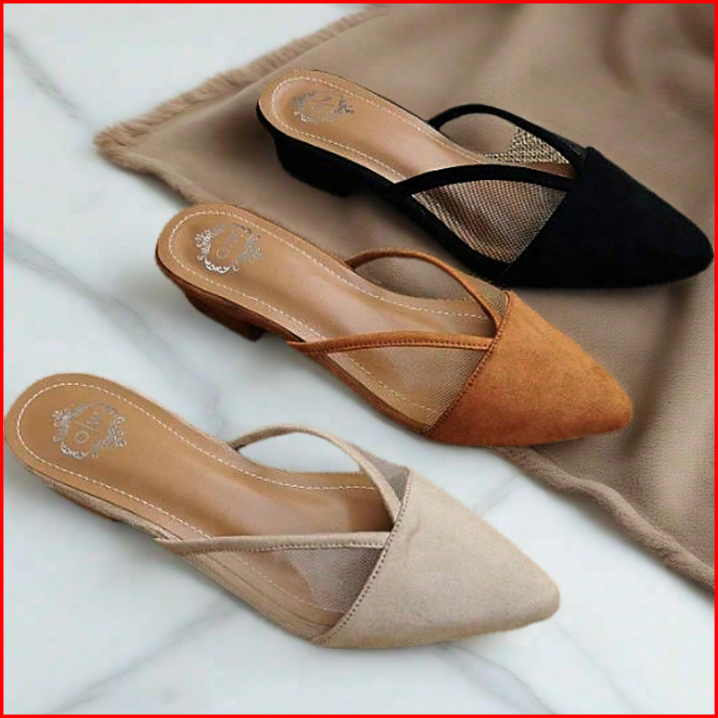 Faduzzi Sandal Mules Wanita Miloni Ujung Lancip Tinggi 3 Cm