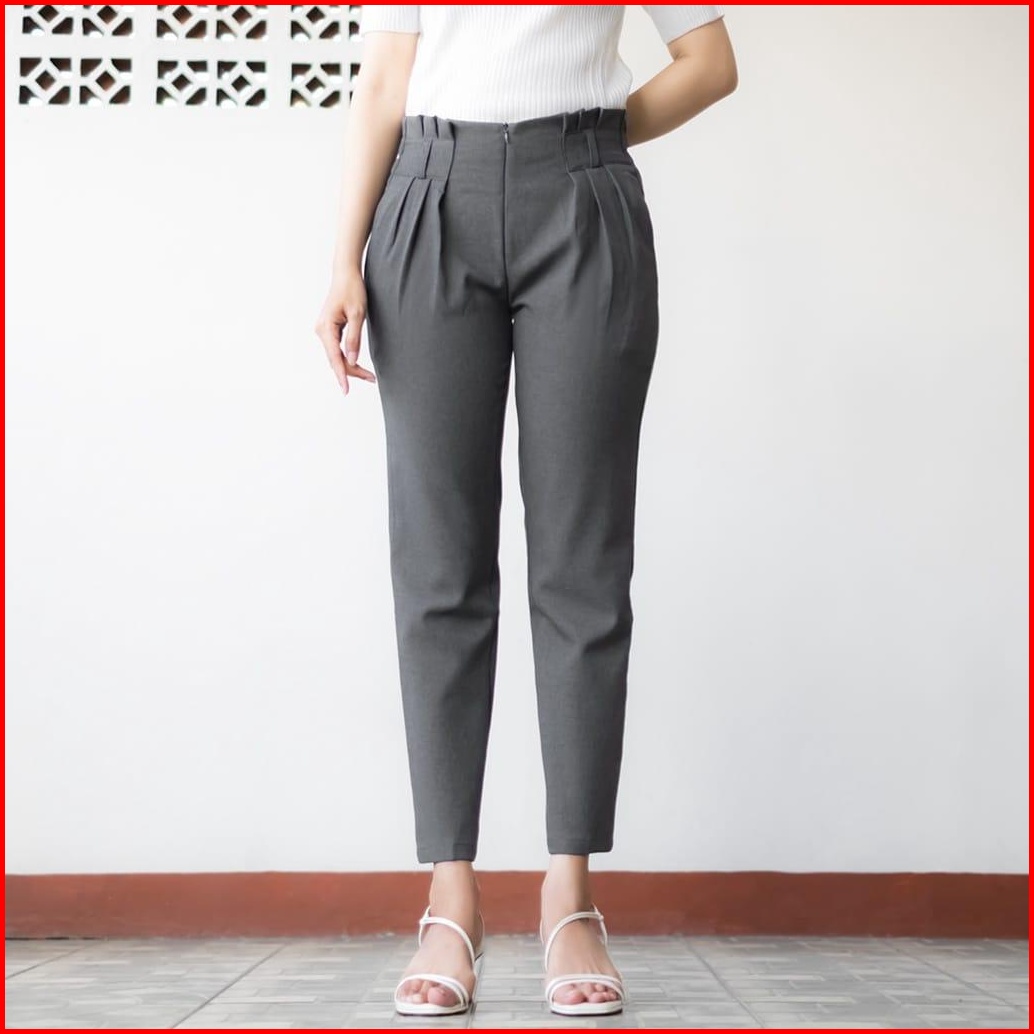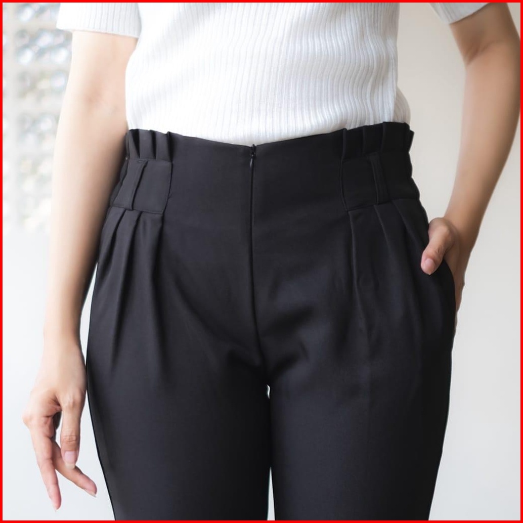 Celana Kerja Kantor Wanita Baggy Pants Highwaist Pinggang Karet Terbaru Celana Kerja Wanita Highwaist Pinggang Rempel Ka