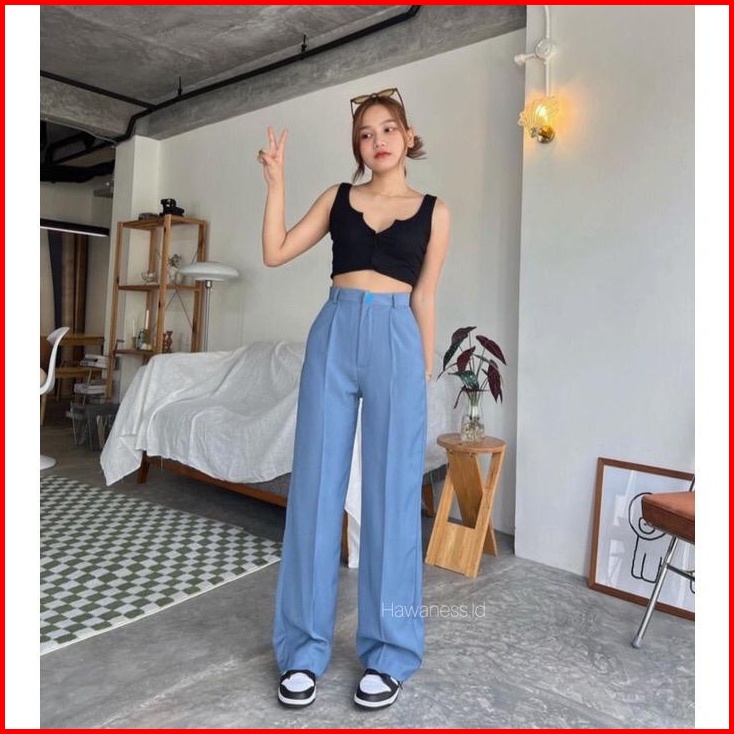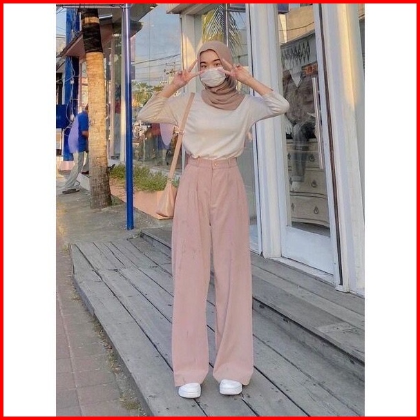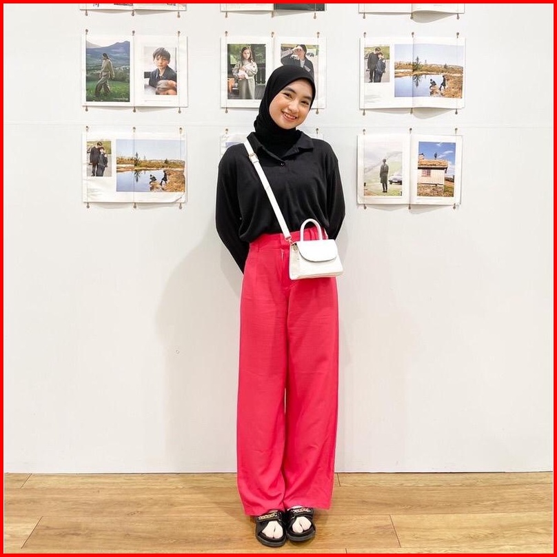 Celana Panjang Wanita Kulot Highwaist Loose Pants Yora Pants Premium Warna Stabilo Terbaru Fuschia