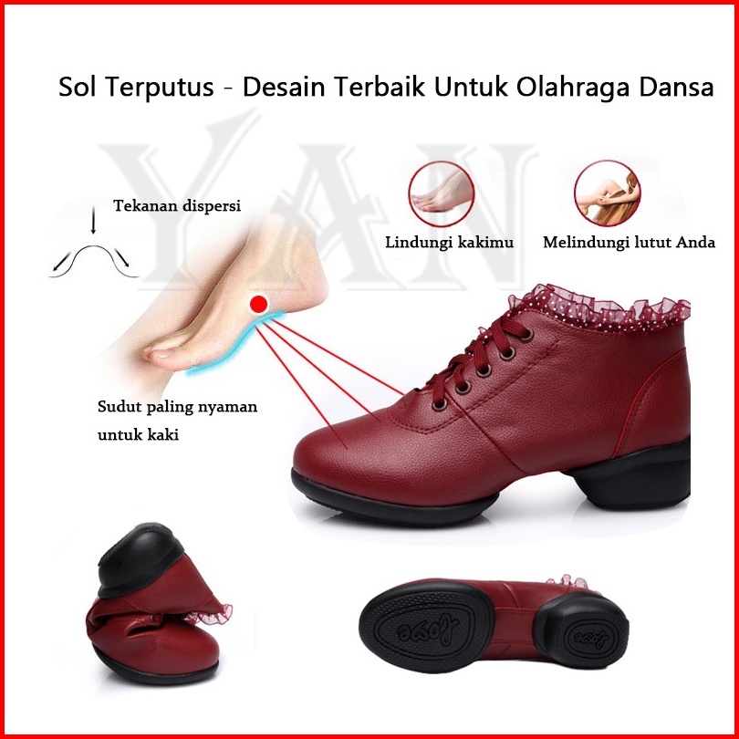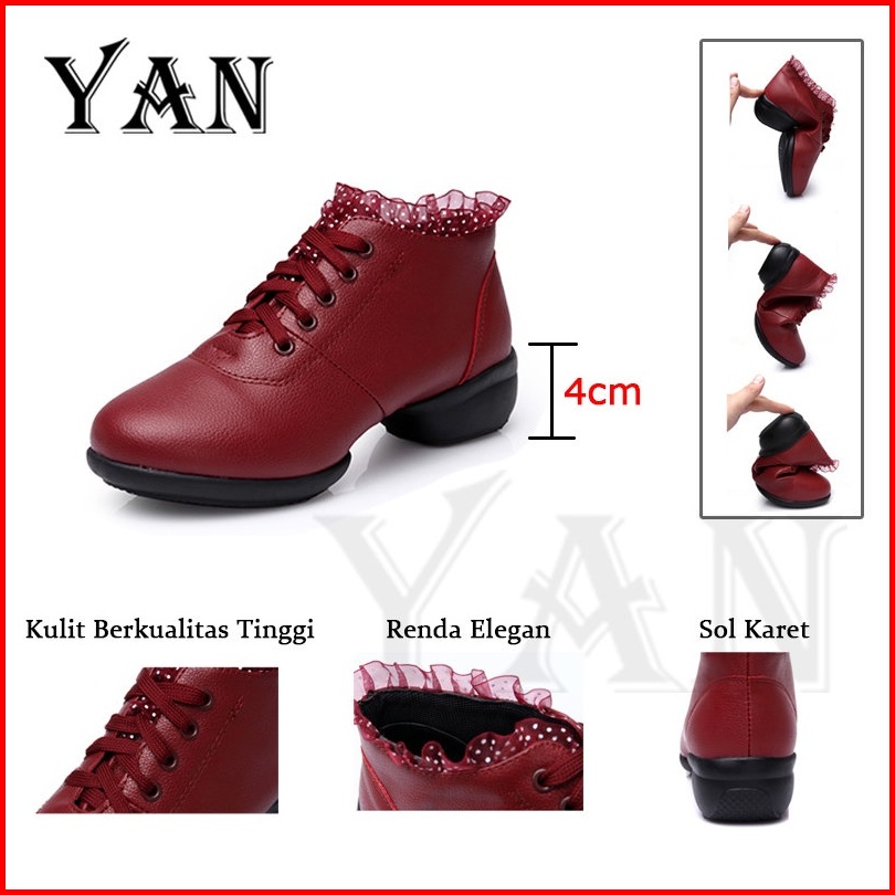 Yan Sepatu Dance Wanita Sepatu Dansa Latin Line Dance Semi Boots Renda Terbaru