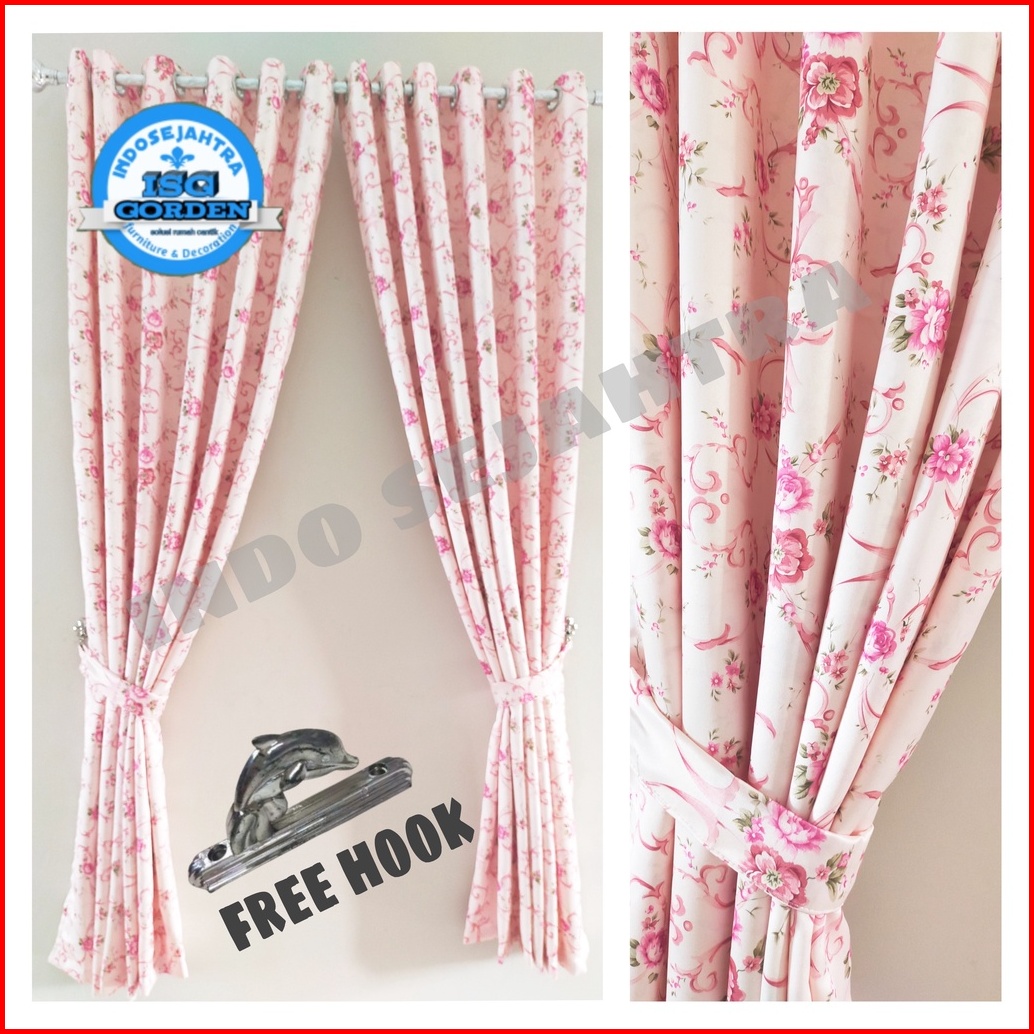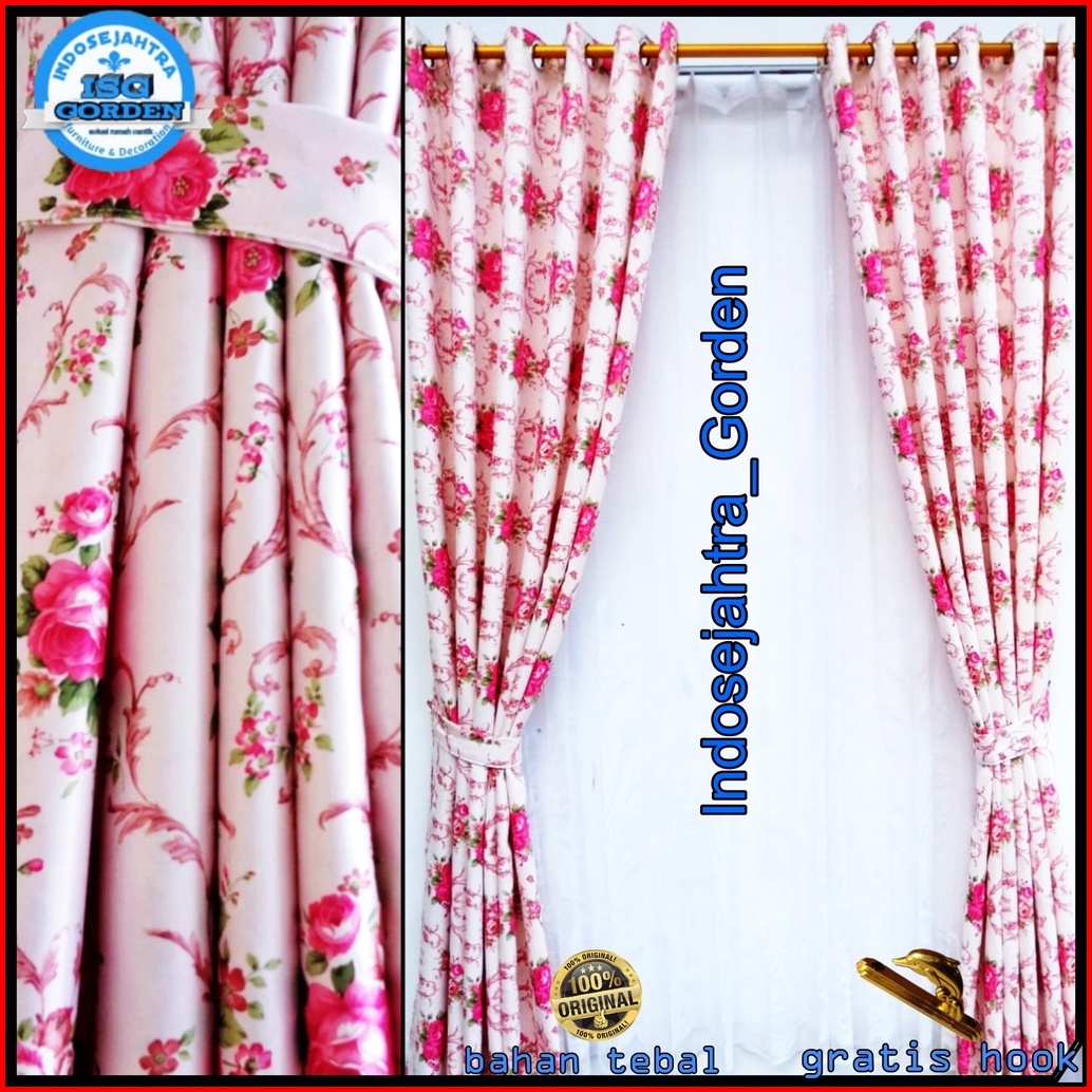 Gorden Jendela Pendek Kamar Tidur Aesthetic Blackout Shabby Chic Bolak Balik Pink