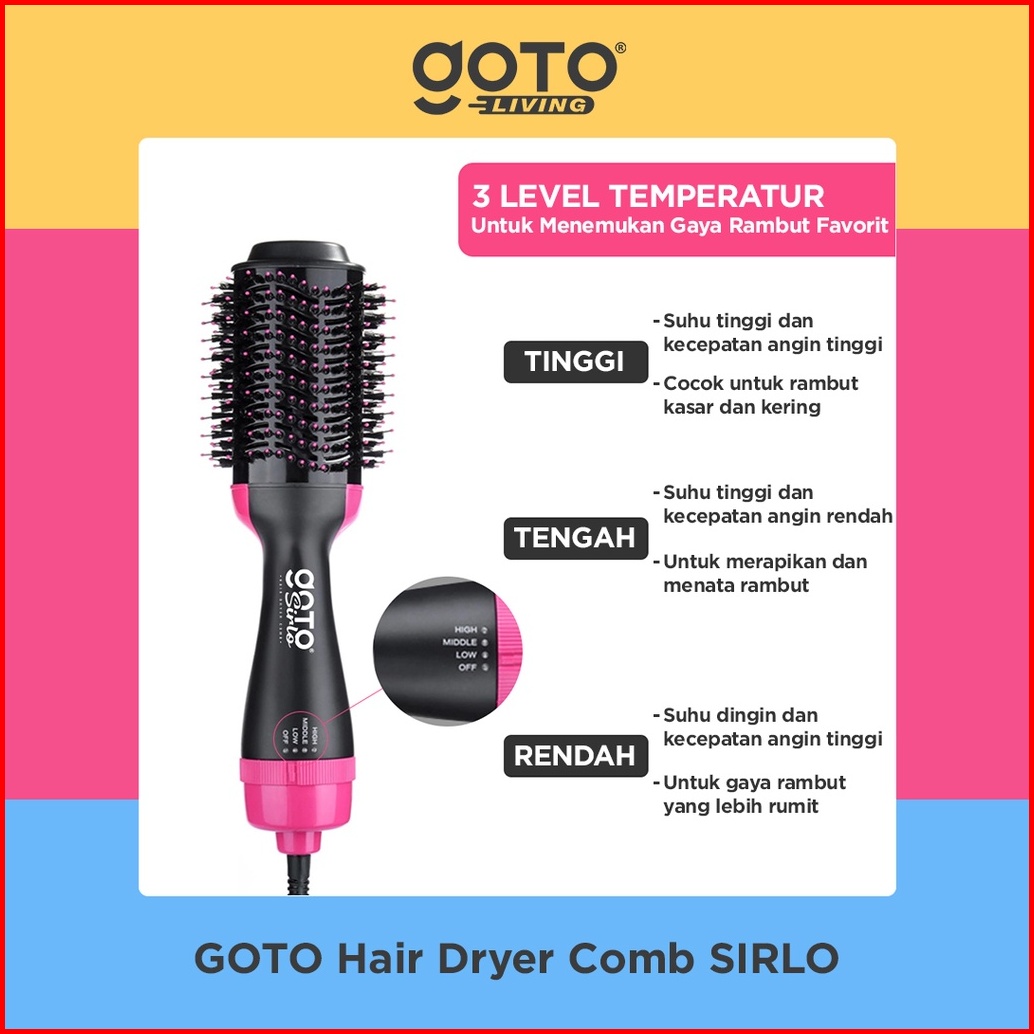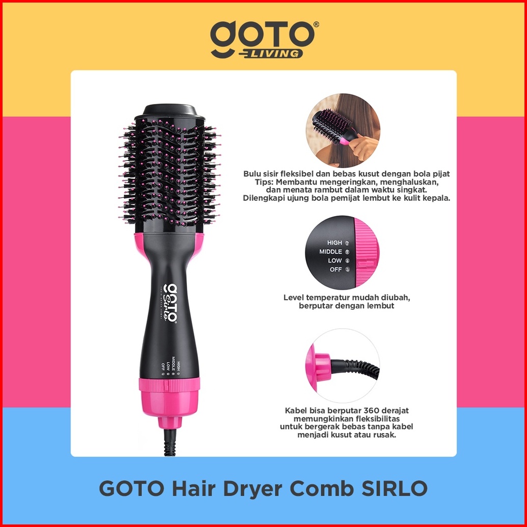 Goto Sirlo Sisir Blow Pelurus Curly Pengering Rambut Elektrik 3in1