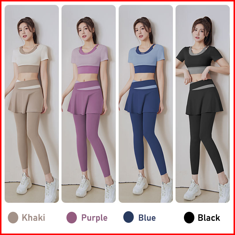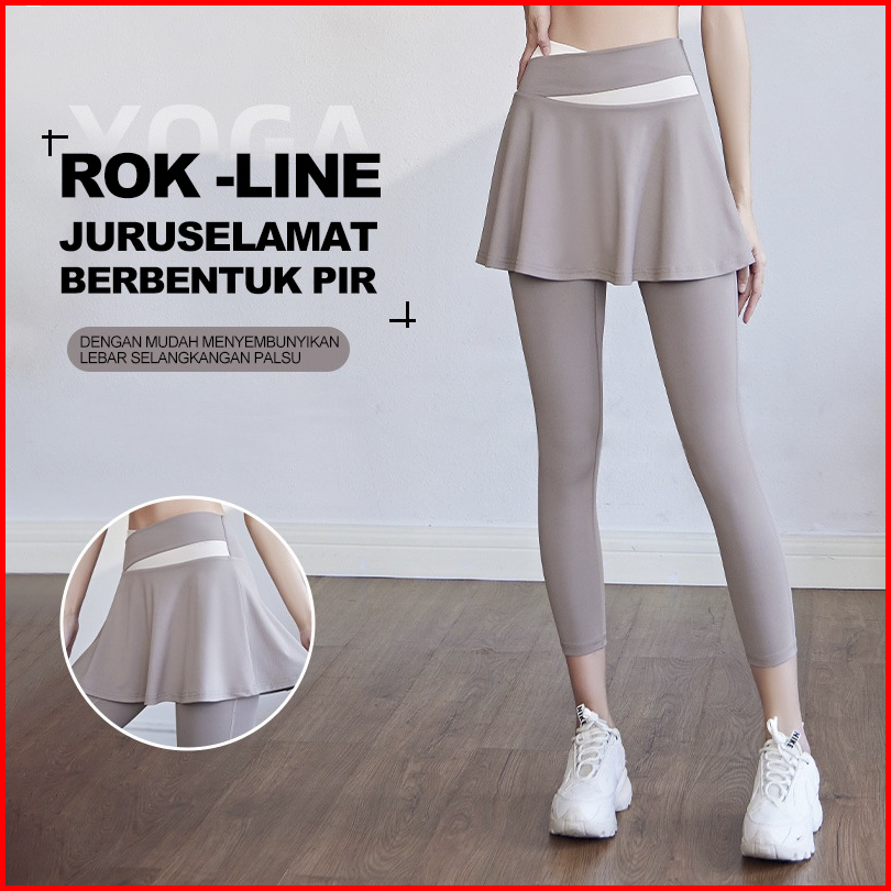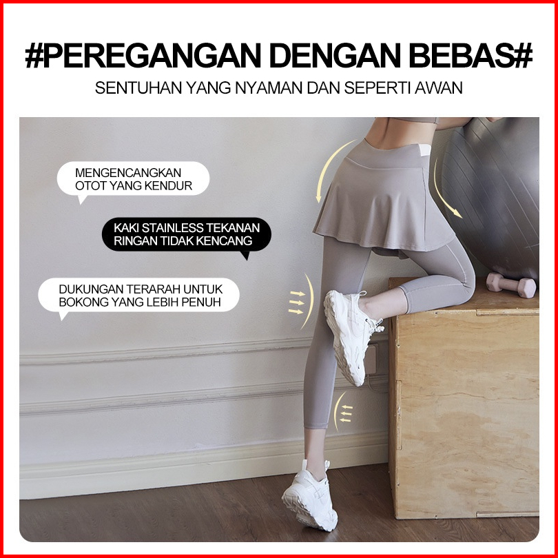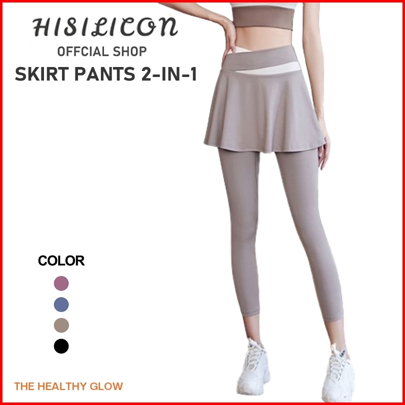 Hisilicon Legging Celana Olahraga Wanita Rok Celana Skirt Hijab Sport High Waist Polos Yoga Dua Lapis Gym Tennis Running