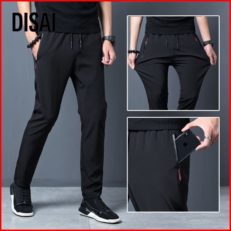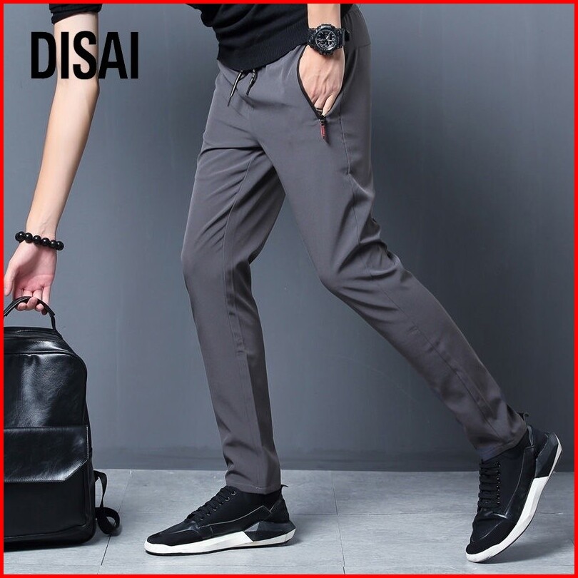 Disai - Celana Pria Tipis Saku Ritsleting Celana Cargo Kasual Olahraga Elastisitas Cepat K8021a