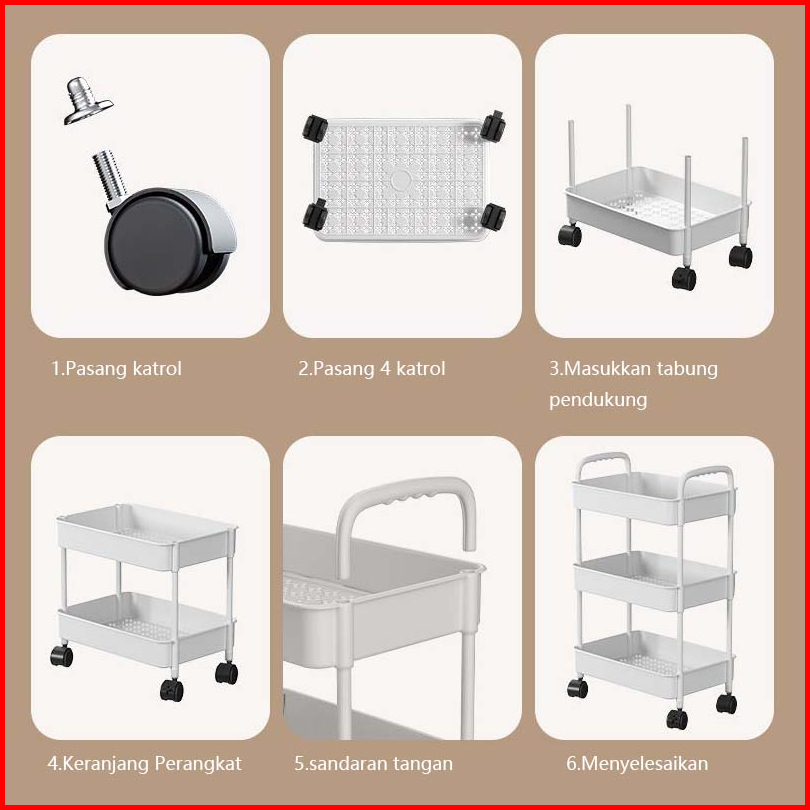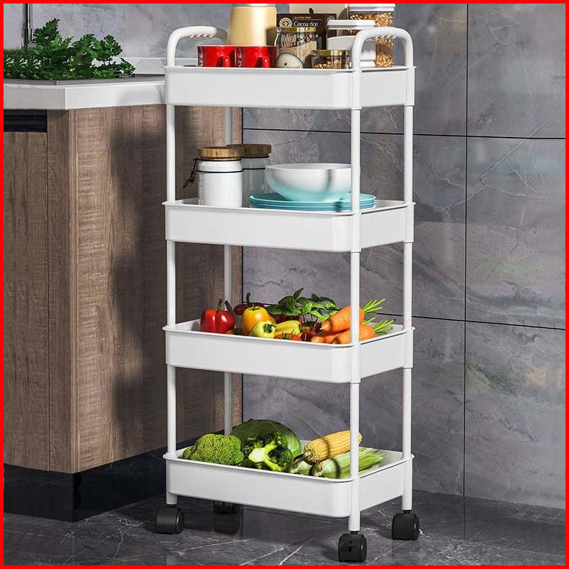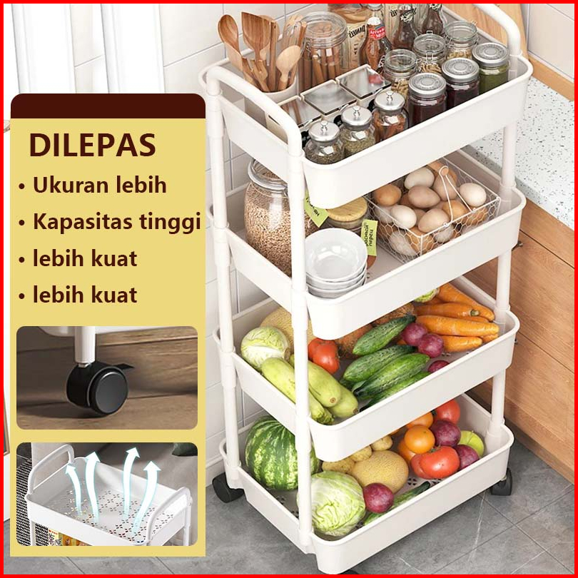 Rak Susun Troli Square Serbaguna 4 Tingkat Dengan Roda Rak Toilet Rak Penyimpanan 4 Susun