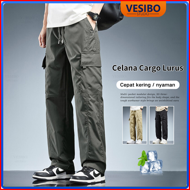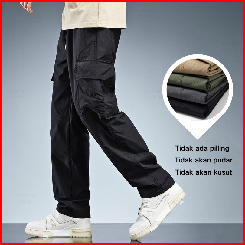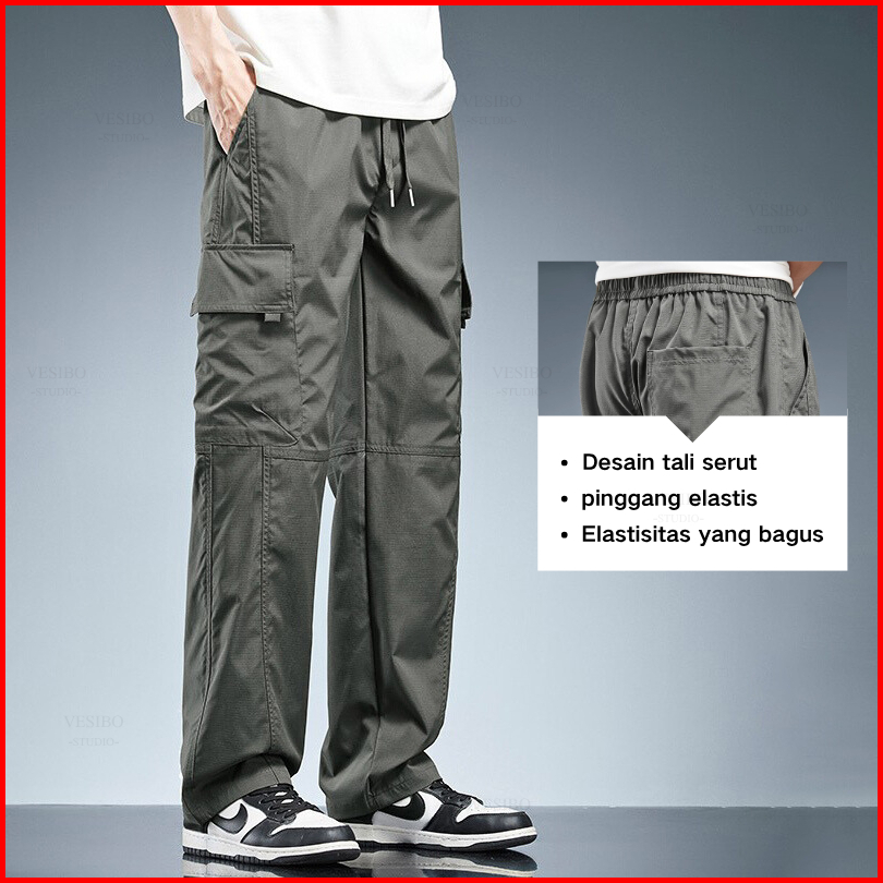 Celana Cargo Panjang Pria Korean Style Oversize Banyak Kantong Fashion Celana Pria Casual Cargopants