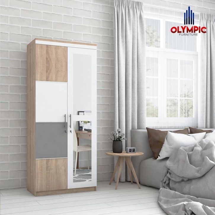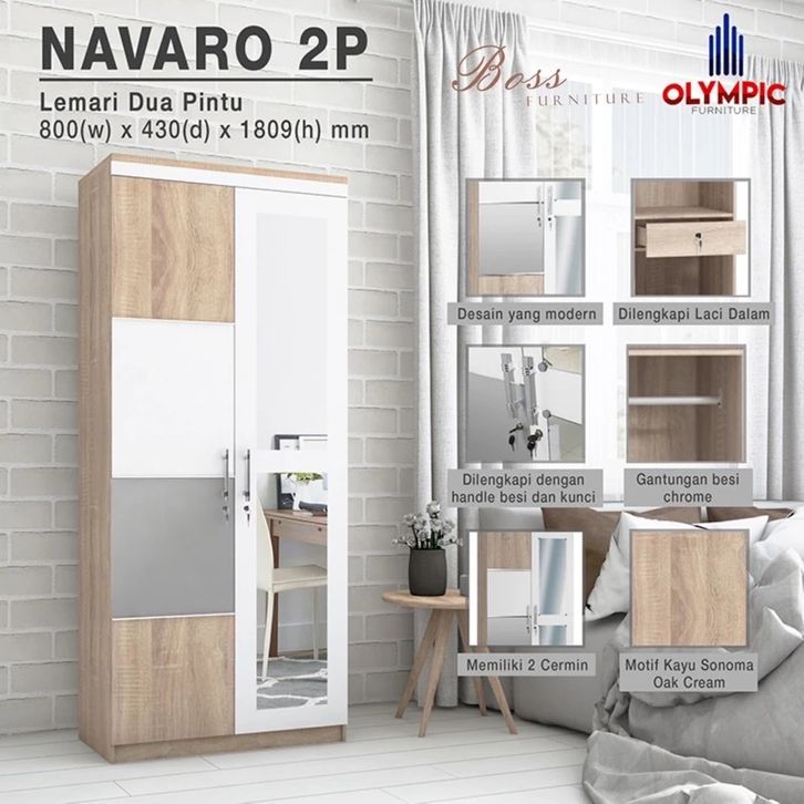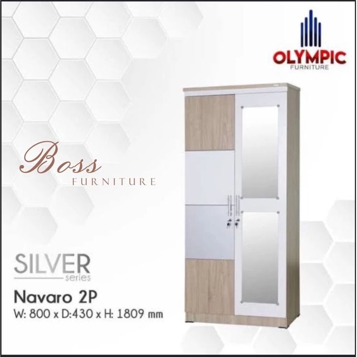 LEMARI 2 PINTU NAVARO 2P OLYMPIC LEMARI PAKAIAN DENGAN CERMIN SERBAGUNA