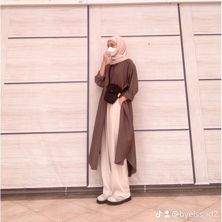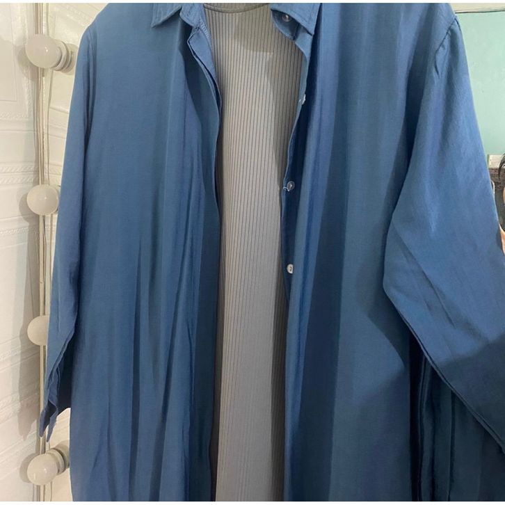 Kemeja Outer Panjang Midi Dres Wanita Long Dres Perempuan Fashion Muslimah Kekinian Polos Bahan Crinkle Airflow Stylish