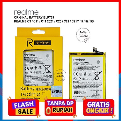 [Mall] Baterai Realme C3 C11 C21 C20 C21Y C11 2021 / 5 / 5S / 5I / BLP729 BLP 729 Original 100% Distributor