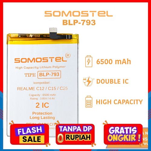 [Mall] Somostel - BLP793 Realme C12/C15/C25/C25S/Narzo 20/Narzo 20A/Narzo 30A/Narzo 50A Batre Batrai Baterai