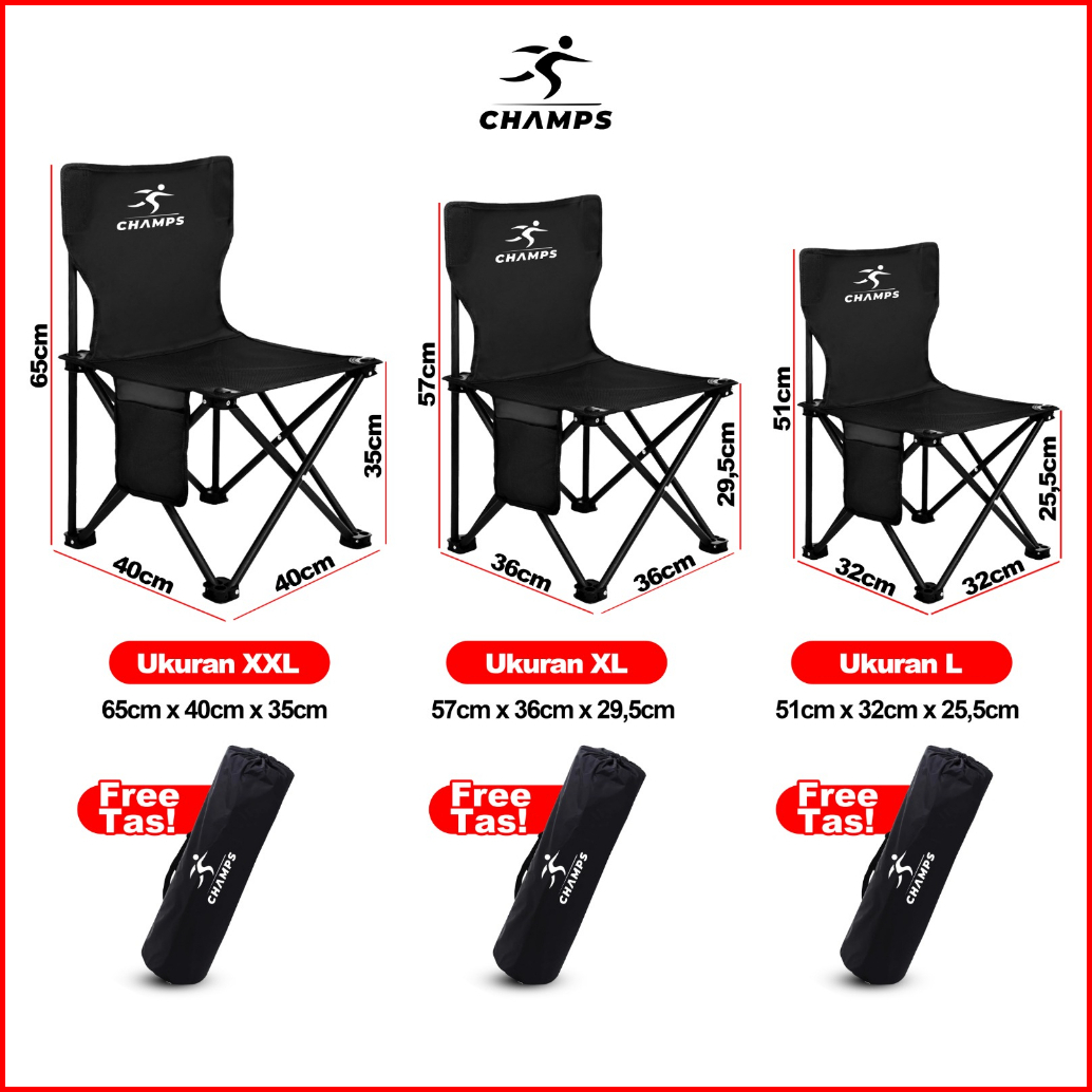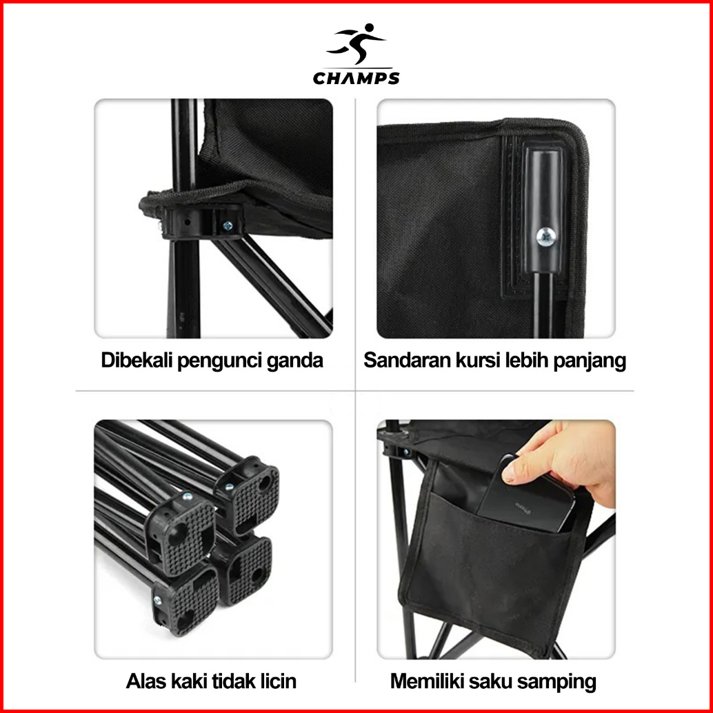 Champs Kursi Lipat Outdoor Kursi Camping Hiking Serbaguna Tebal Tahan Lama Mudah Dibawa