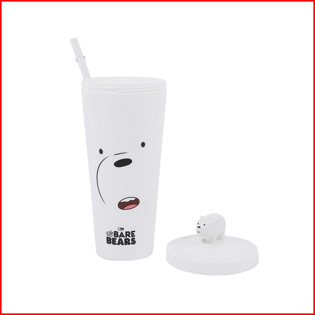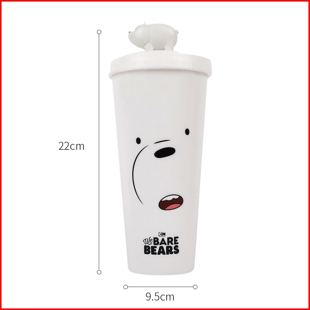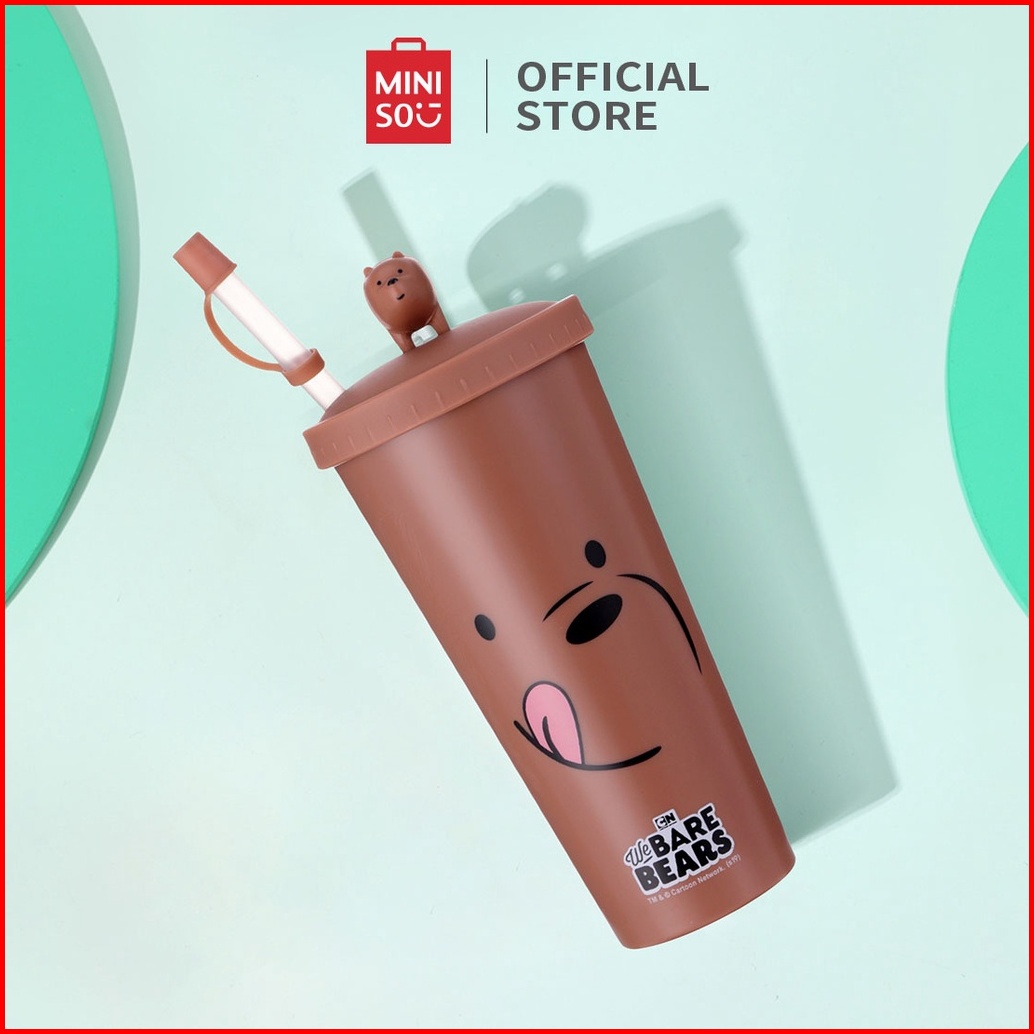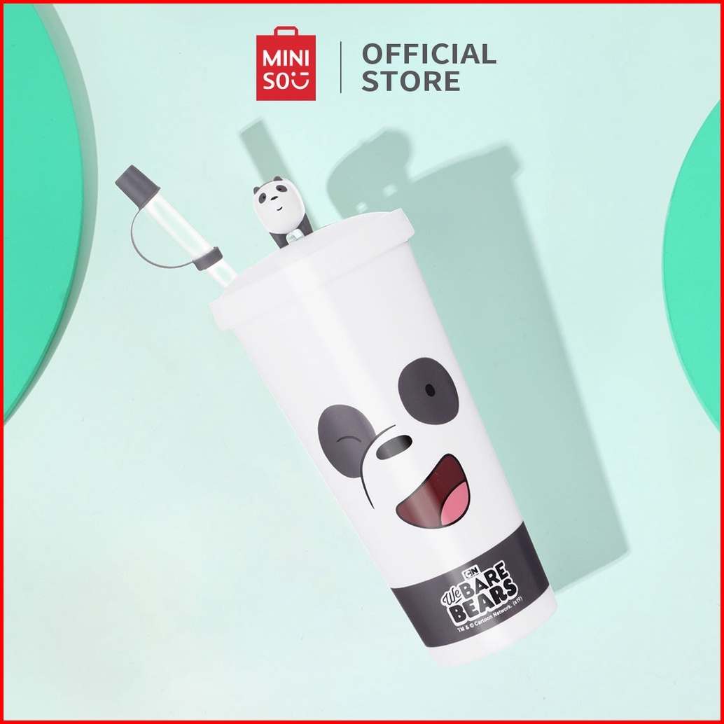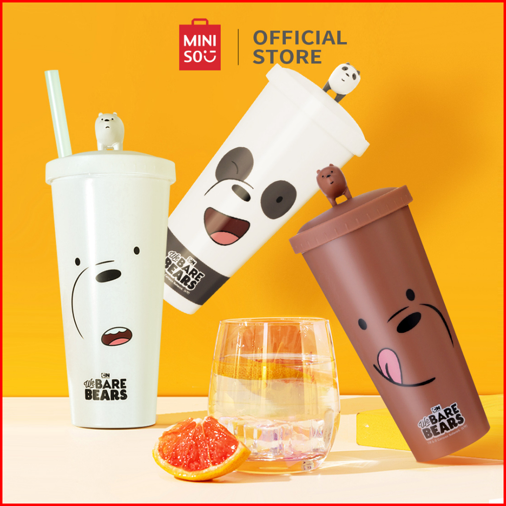 Miniso Botol Minum Sedotan Plastik We Bare Bear Tumbler Botol 640ml Water Bottle Plastic Straw Type B With Straw